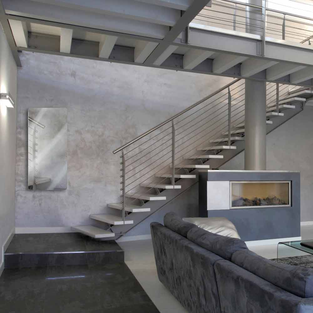 Seine Einzigartigkeit hängt von seinem geschwungenen, klaren und essentiellen Design ab, das sich für jede Art von Umgebung von klassisch bis modern eignet. Es besteht vollständig aus gehärtetem Glas und ist daher ein zu 100 % recycelbares Produkt, das die Umweltbelastung auf Null reduziert. Jonny enthält auch zwischen seinen beiden Scheiben aus unzerbrechlichem gehärtetem Glas, die beide 4 + 4 mm dick sind, einen Widerstand. Die Besonderheit dieses Produkts liegt in der äußersten Glasplatte, tatsächlich handelt es sich um eine gehärtete Glasplatte mit Silberbeschichtung, damit der Heizkörper wie ein echter Spiegel aussieht.