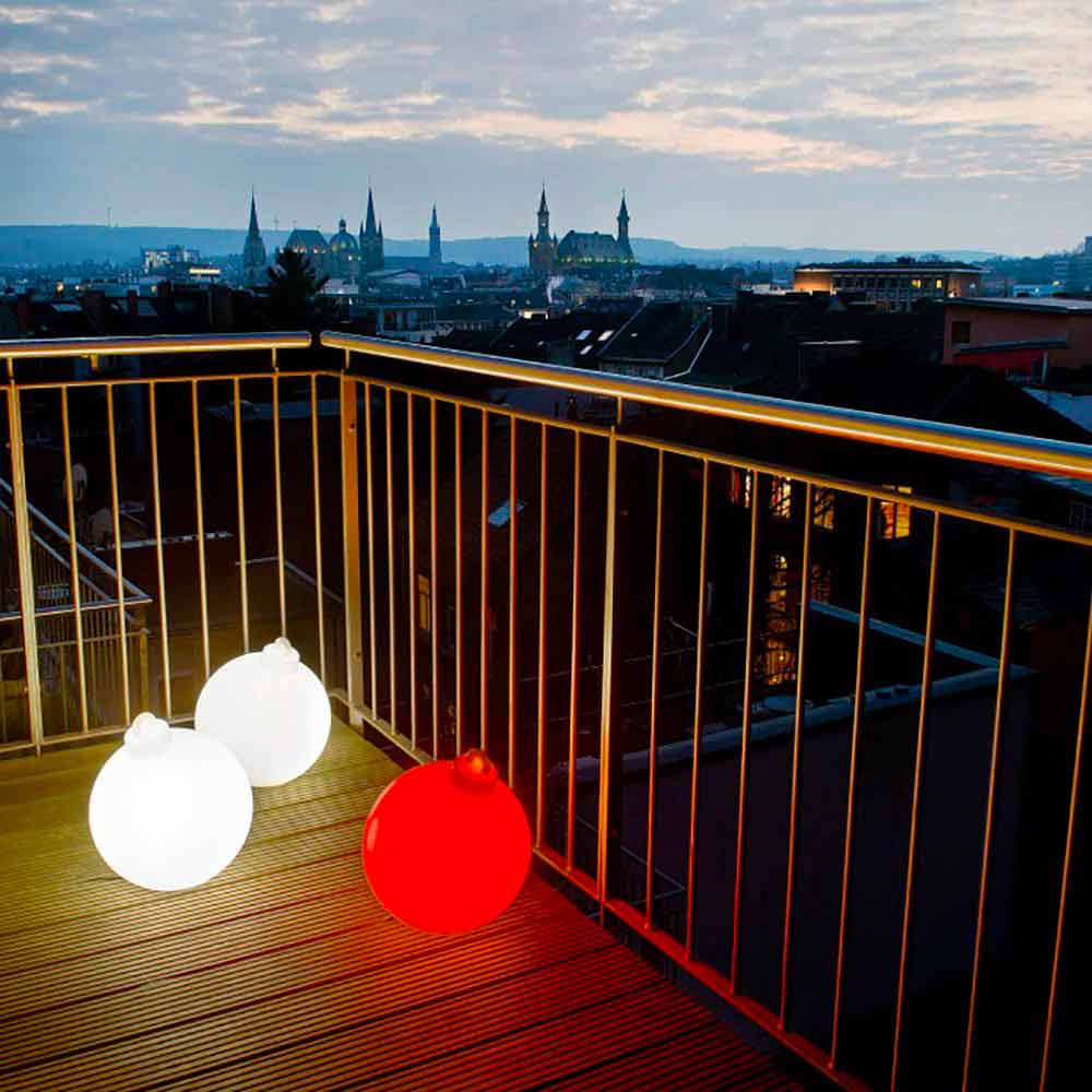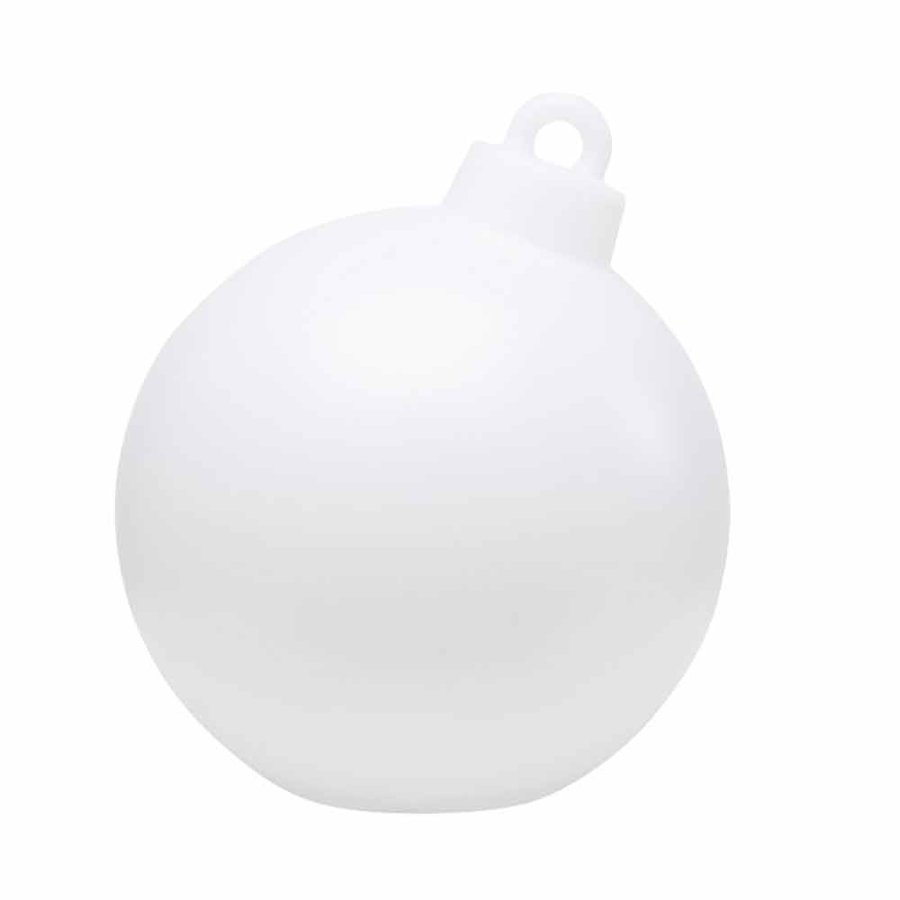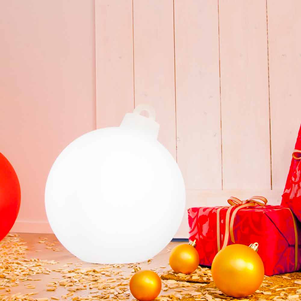 Stehlampe in Form einer Weihnachtskugel aus weißem Polyethylen, mehrfarbiger LED-Anschluss, Solar oder E27 für drinnen oder draußen.