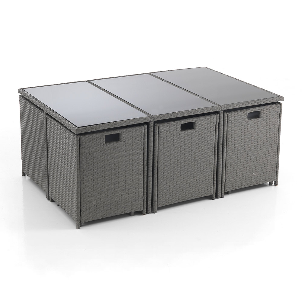 Dieses modulare Gartenset ist der Inbegriff von Vielseitigkeit und Platzeffizienz . Das Set passt zu jeder Außenumgebung und umfasst einen stilvollen Tisch und passende Sitzgelegenheiten , die sich bei Nichtgebrauch zu einer kompakten, übersichtlichen Anordnung zusammenfügen und sich in eine moderne Designskulptur verwandeln.
