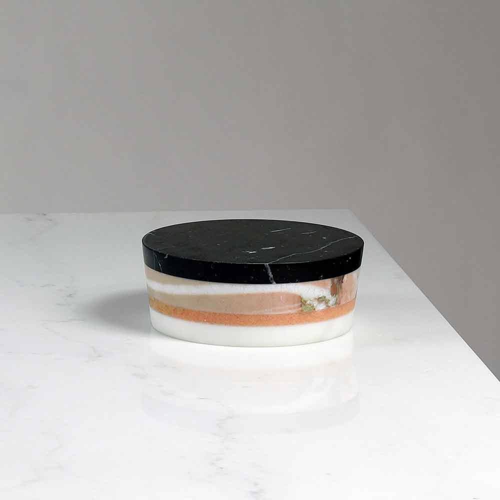 Behältervase oder Tafelaufsatz aus geschichtetem Marmor, hohe Qualität made in Italy.