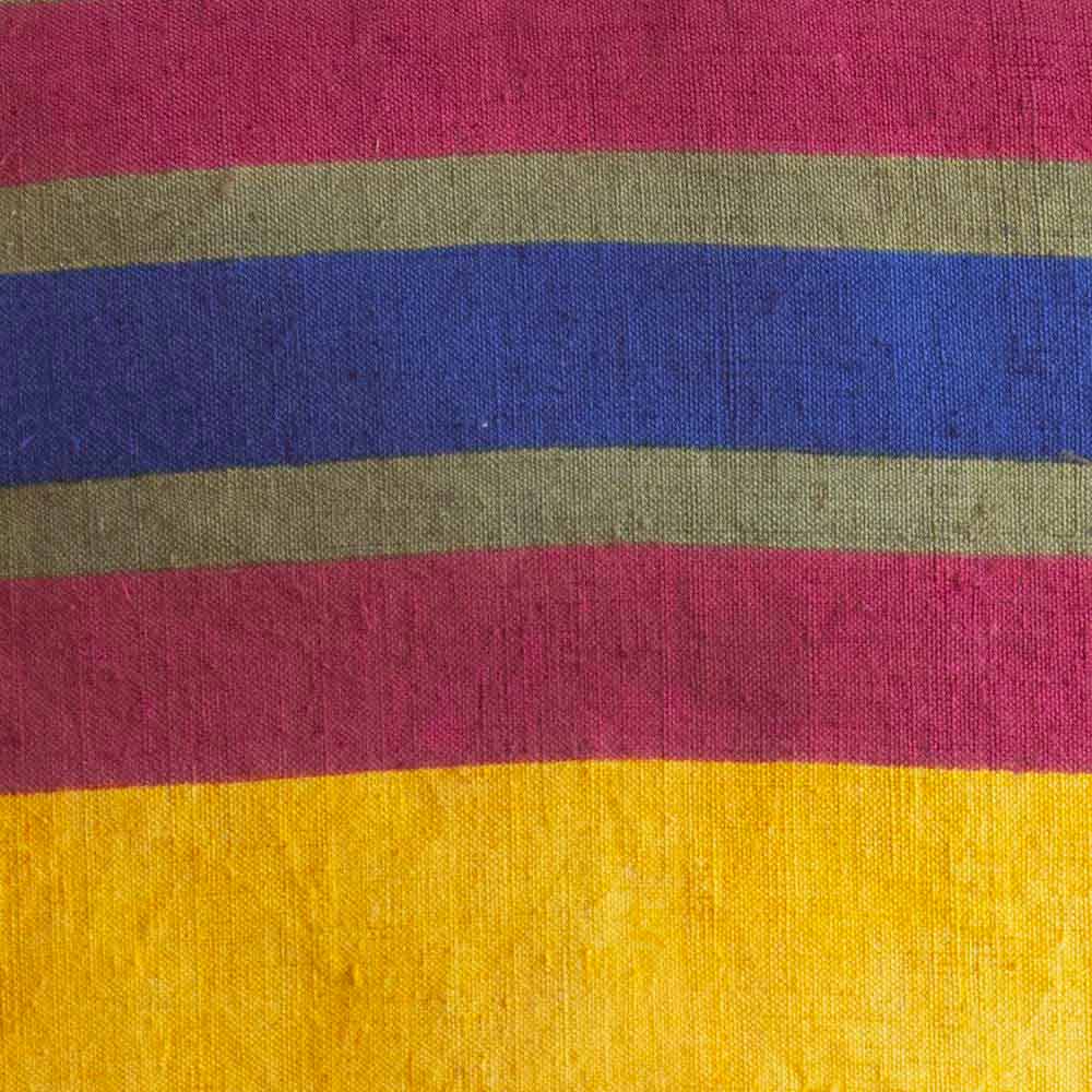 • Oberstoff : 100% altes Hanfgewebe, handgewebter Webstuhl. Das typische Merkmal dieses alten und kostbaren Stoffes ist die Unregelmäßigkeit der Textur.