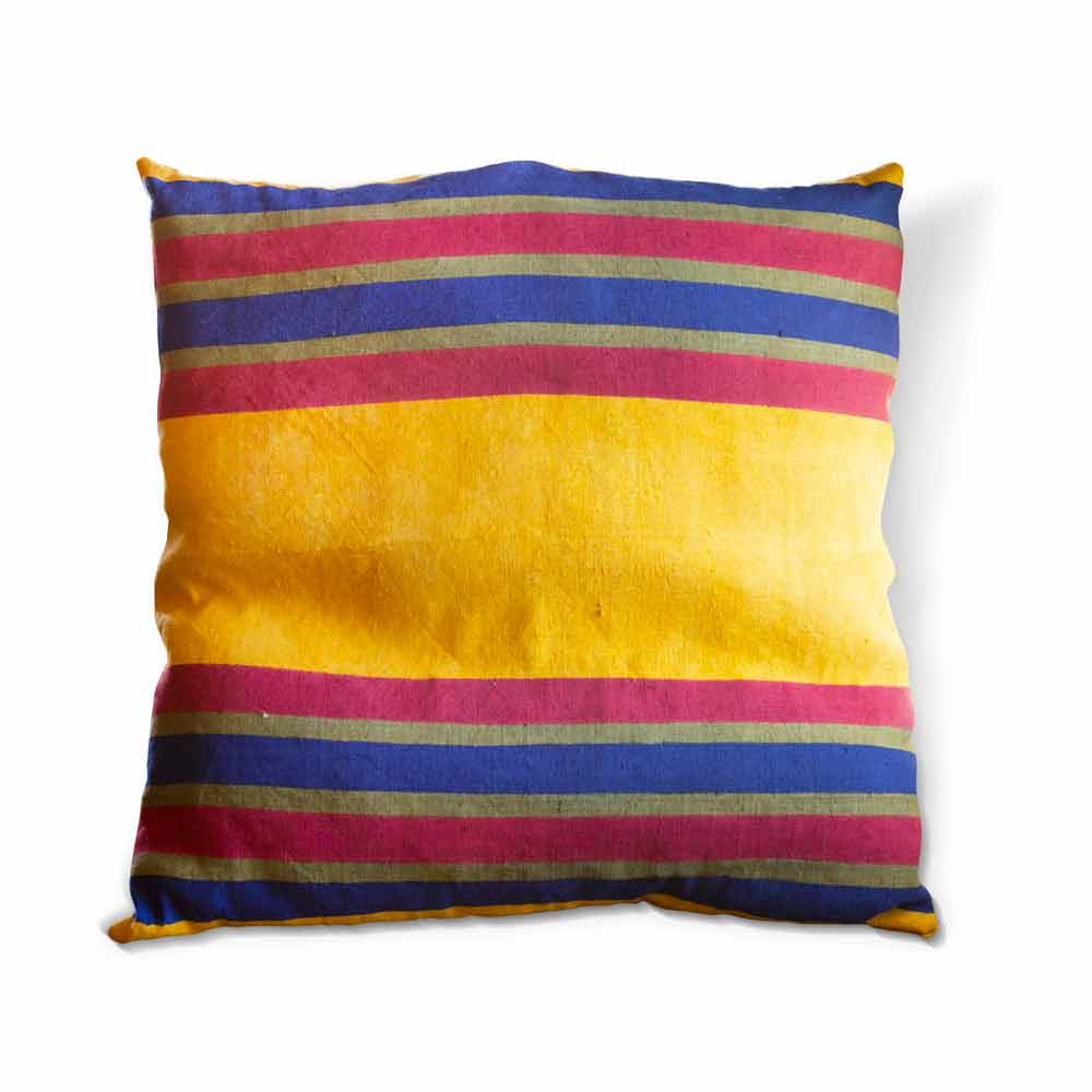 Kissen von feiner Handwerkskunst mit quadratischen Abmessungen aus widerstandsfähiger alter Leinwand und vollständig handbemaltem, einzigartiges Qualitätsstück, hergestellt in Italien.