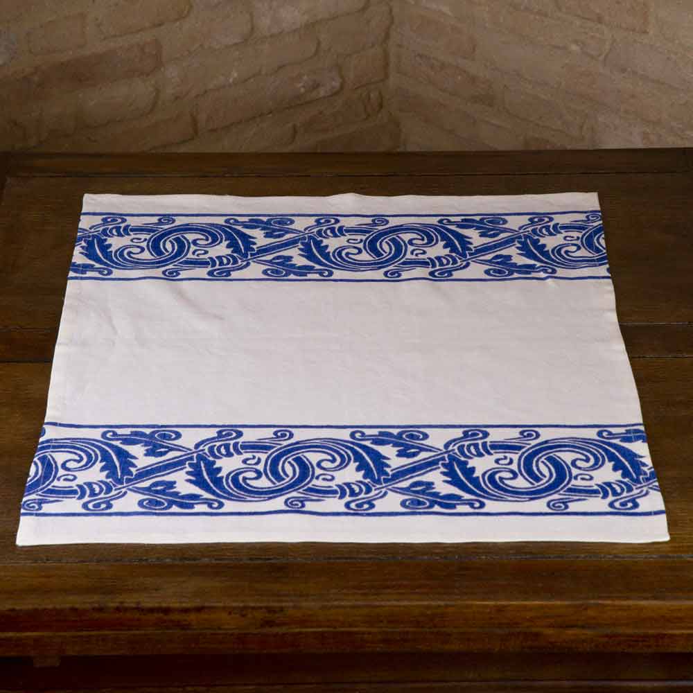 Handbedrucktes Geschirrtuch von hochwertiger Handwerkskunst im antiken Design ausgestattet, erhältlich in drei Varianten, exklusive italienische Kunstkreation.