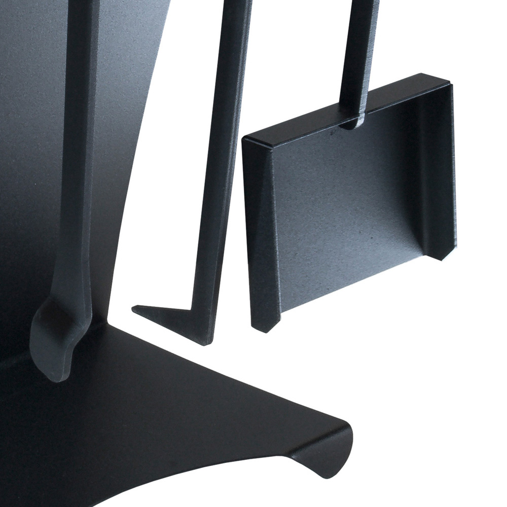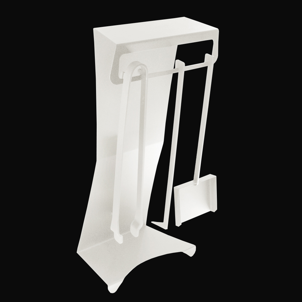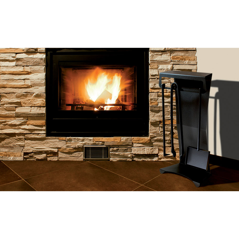 in Italien gefertigt. Eine unverzichtbare Einrichtungslösung, die mit Ihrem Holzscheithalter kombiniert werden kann, da sie dank der drei nützlichen Werkzeuge für die Wartung des Feuers und die Reinigung des Kamins besonders funktional ist: eine