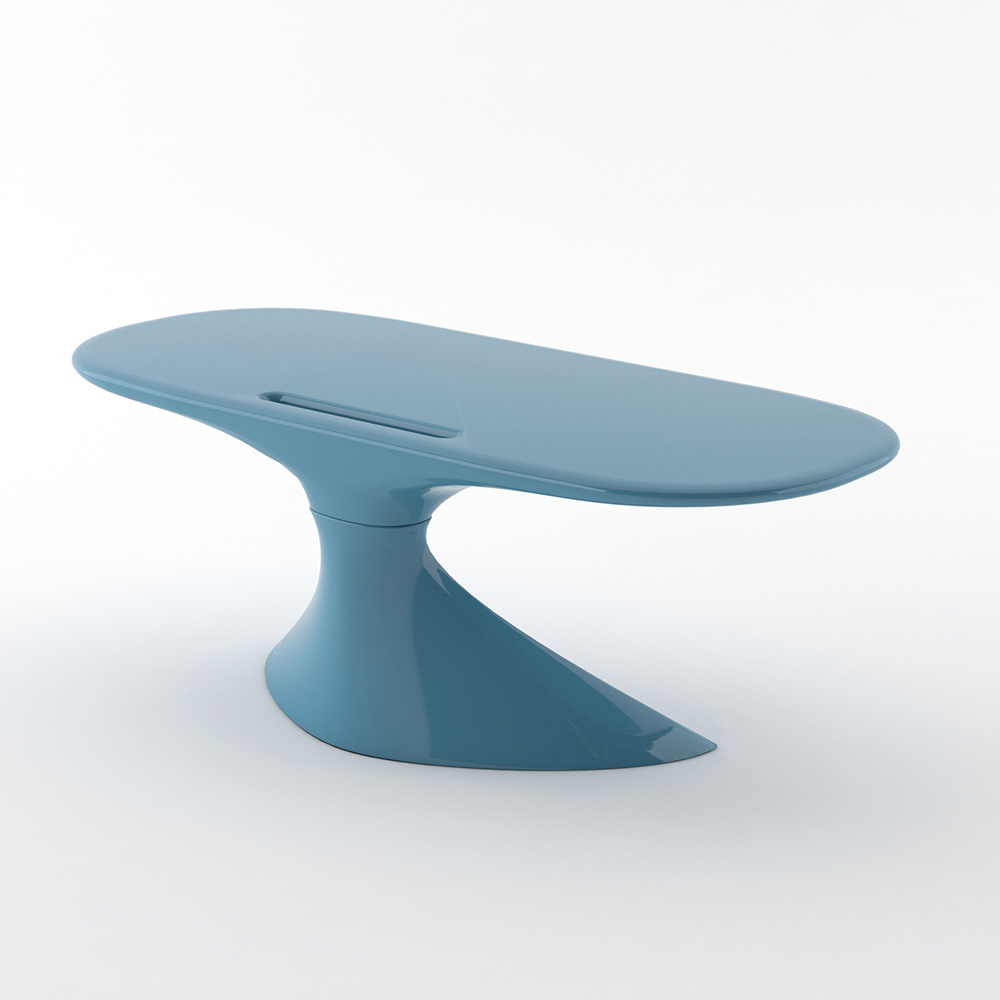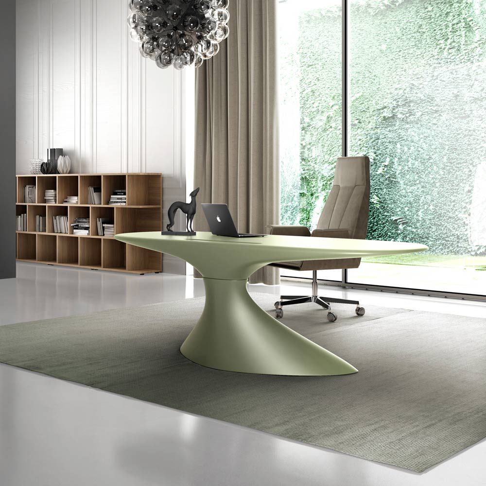 Schreibtisch mit originellem und modernem Design, gekennzeichnet durch einfache und geschwungene Linien.