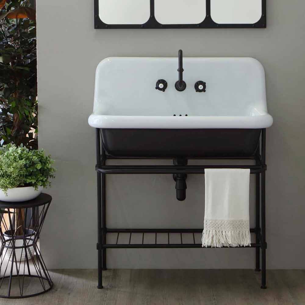 Taylor ist ein wunderschönes Wandwaschbecken in rechteckiger Form mit einem originellen Vintage-Design, das durch eine schöne Metallstruktur mit Gitter bereichert wird.