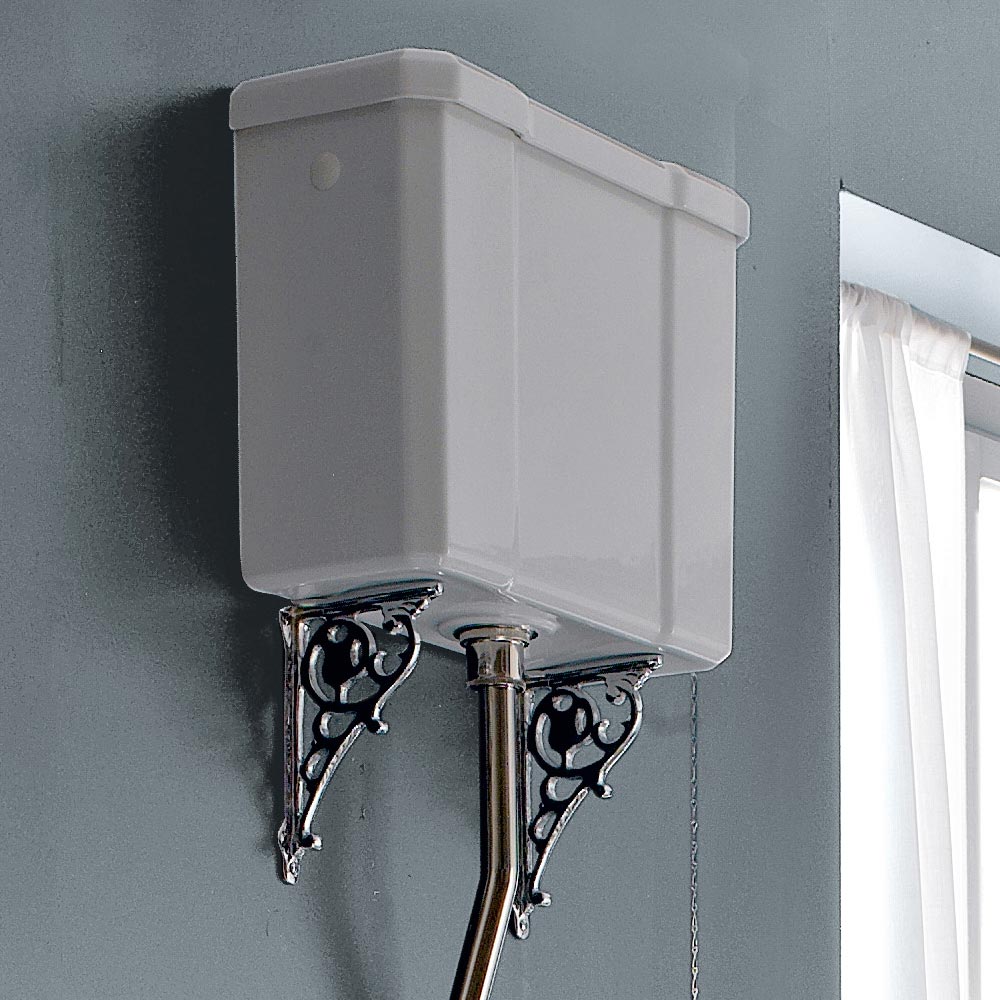 Bodenstehendes WC im klassischen Stil mit hoher weißer Marwa-Keramikbox, hergestellt in Italien.
