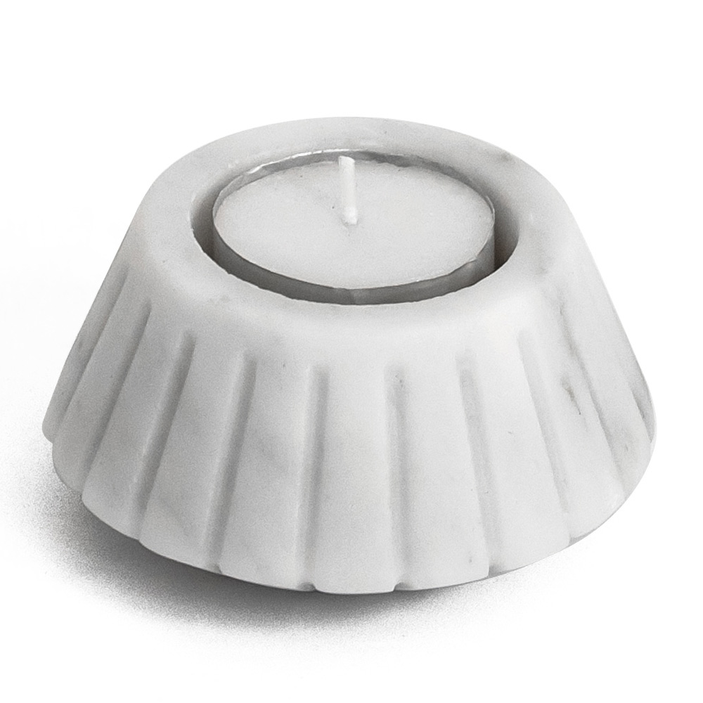 Kerzenhalter aus satiniertem Marmor in verschiedenen Ausführungen, 2 Stück hergestellt in Italien.
