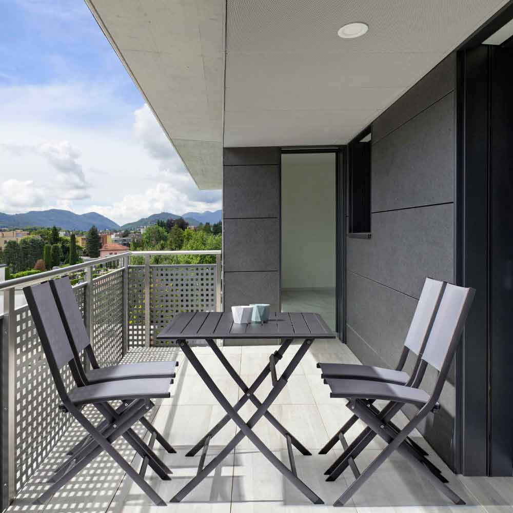 Stapelbarer Gartenstuhl aus anthrazitgrauem Aluminium und Teak - Aidan