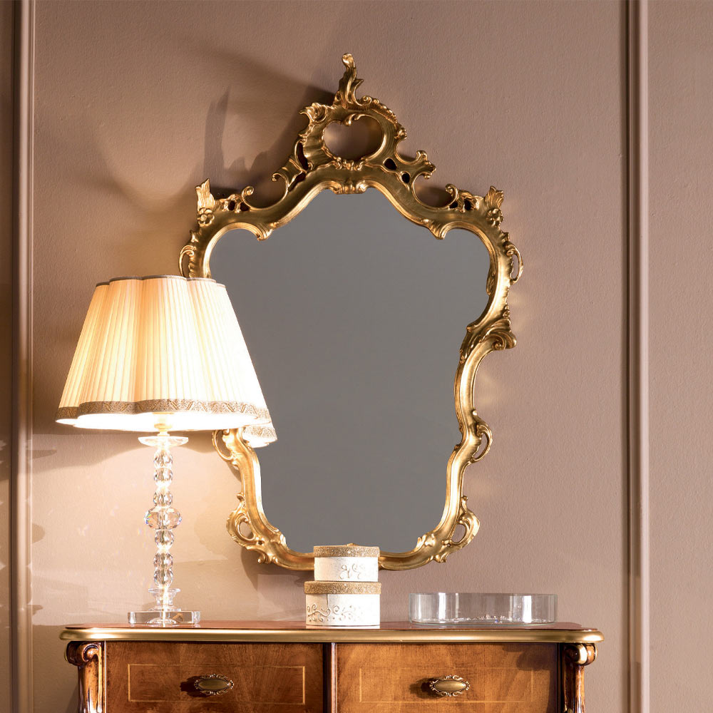 Spiegel im klassischen Stil mit geformtem Rahmen, der mit Blattgold veredelt ist, ideal, um jede Umgebung mit Persönlichkeit und Originalität zu dekorieren. Eine einzigartige und raffinierte Ergänzung, die vollständig in Italien von erfahrenen Handwerksmeistern hergestellt wird, Meister der Kunst, die jede Ergänzung mit Weisheit und Geschmack für Eleganz vervollständigen. Die Produktion erfolgt unter Verwendung hochwertiger Materialien und mit der größten Sorgfalt und Professionalität, die die Produkte Made in Italy auszeichnet .