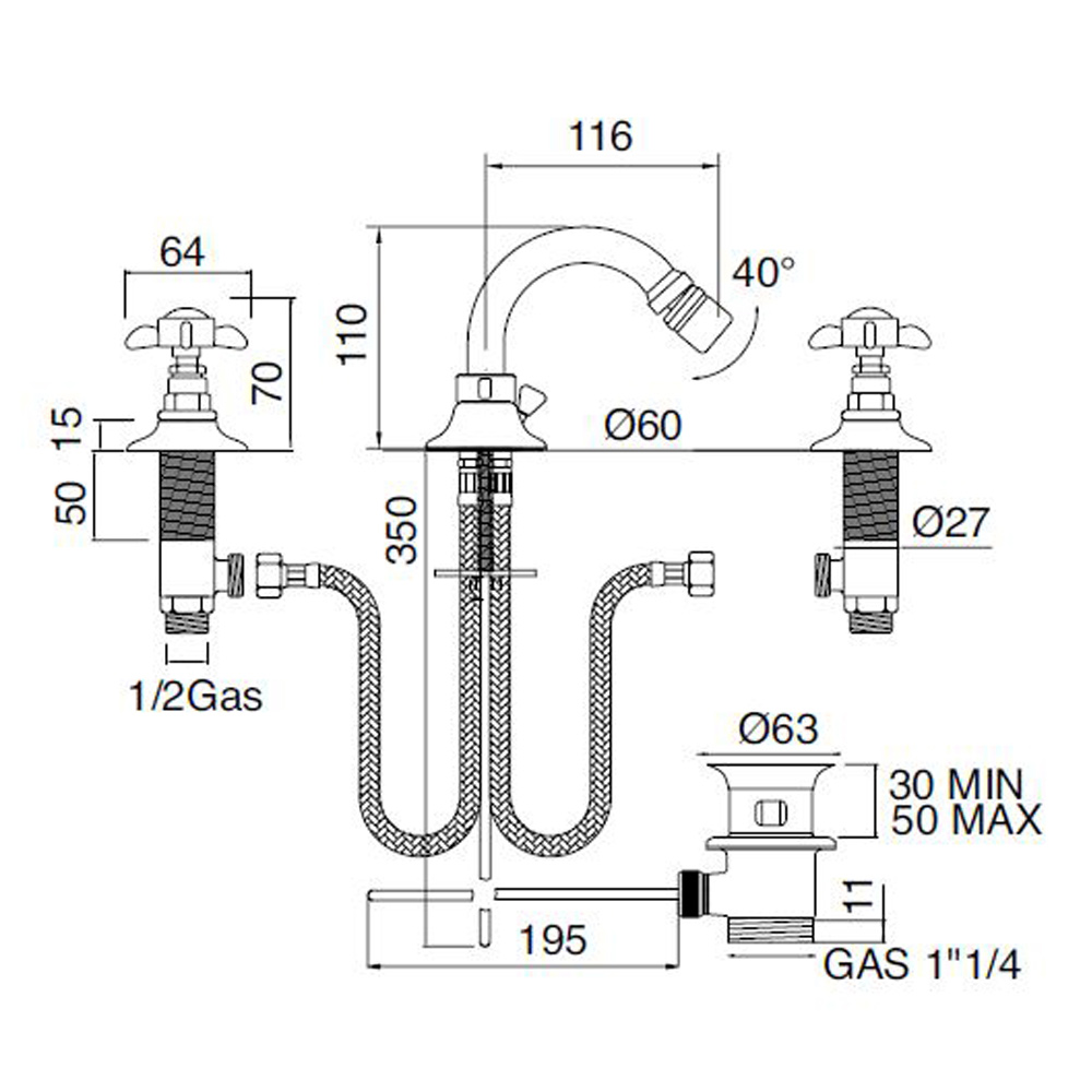 3-Loch-Bidet-Armatur mit Abfluss è vollständig