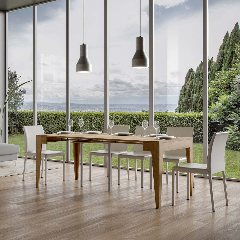Klassische, auf 3 m ausziehbare Konsole aus Melaminholz, hergestellt in Italien – Argelia