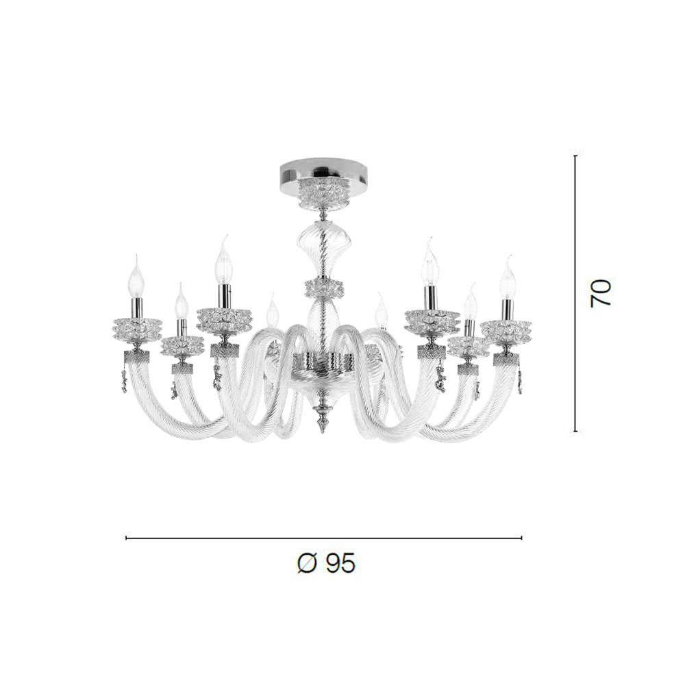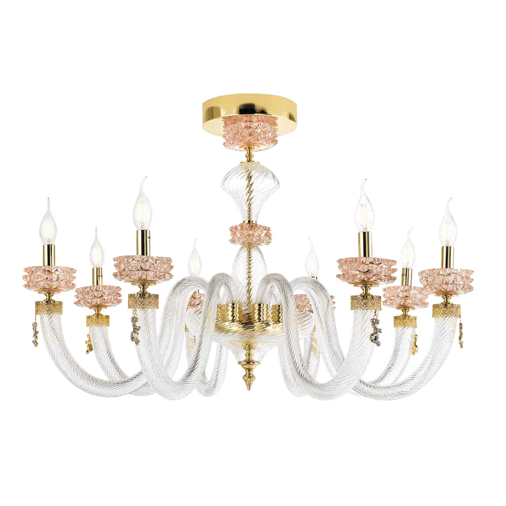 Deckenleuchte mit 8 Lichtern aus handgefertigtem Glas und Metall, italienisches Luxusdesign.