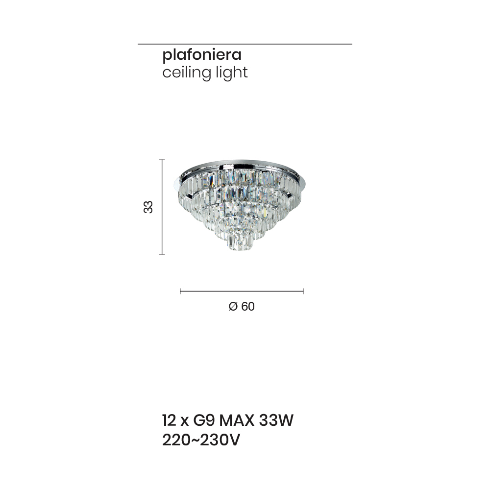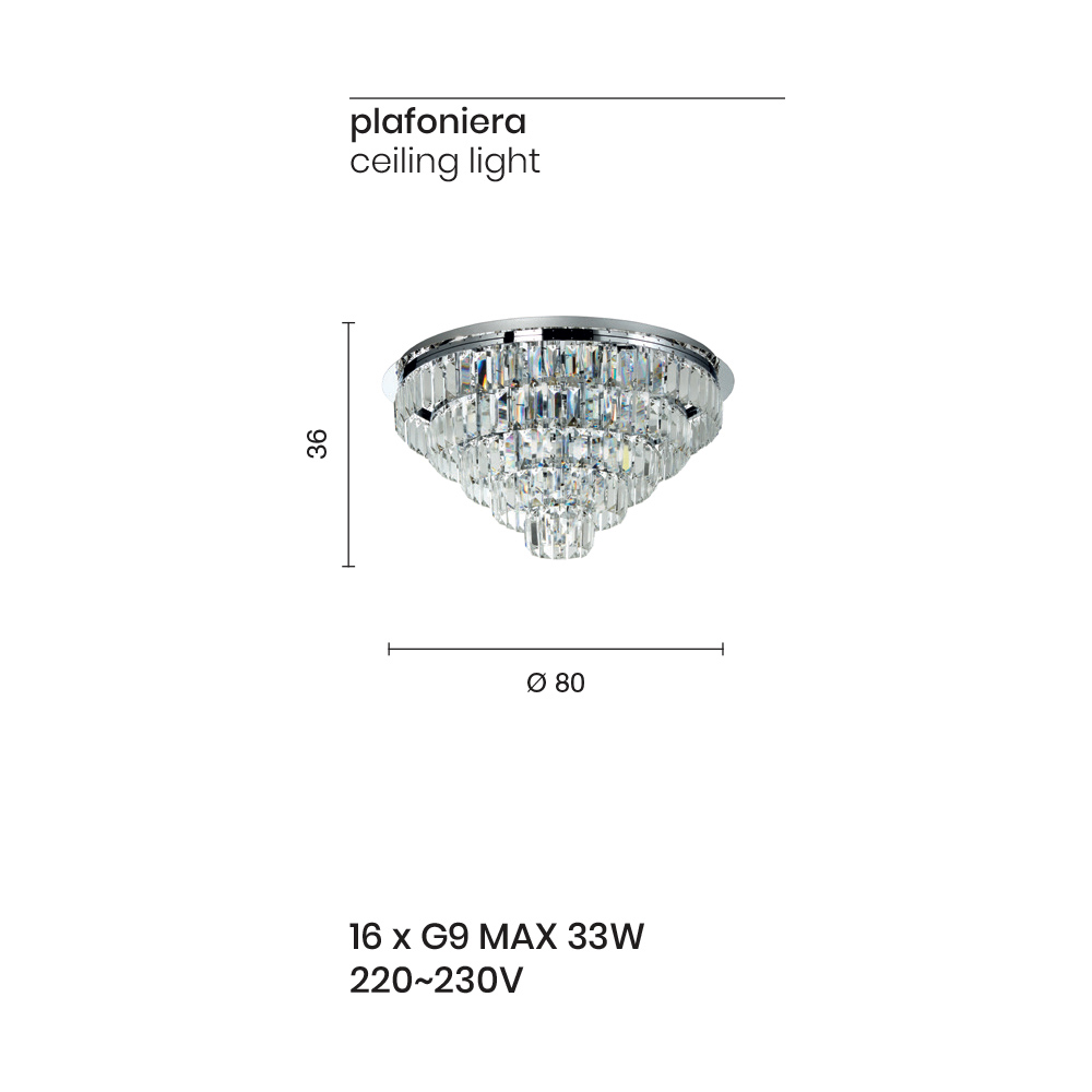 Diese Wohnzimmer- Deckenleuchte mit 9, 12 oder 16 Leuchten ist in der Lage, dank seines edlen und hellen Designs luxuriöse und wichtige Atmosphären zu schaffen.