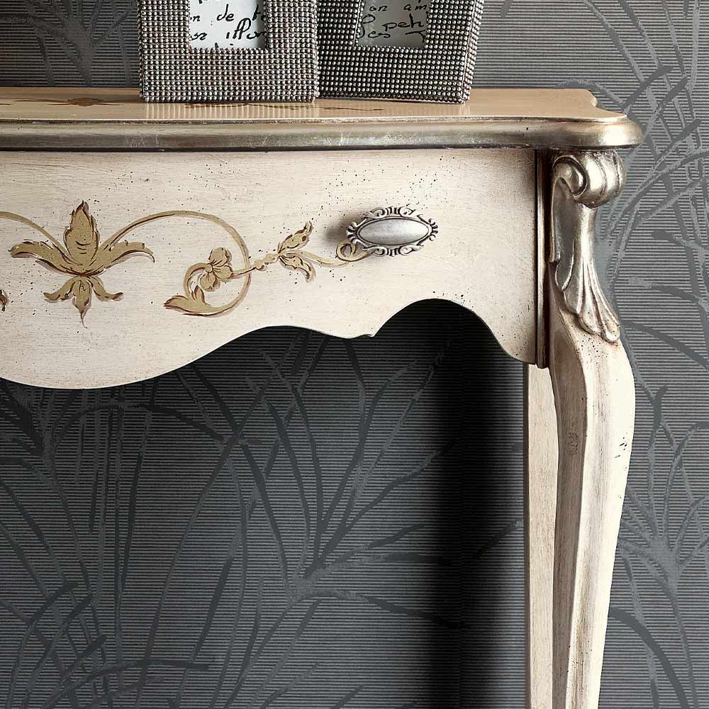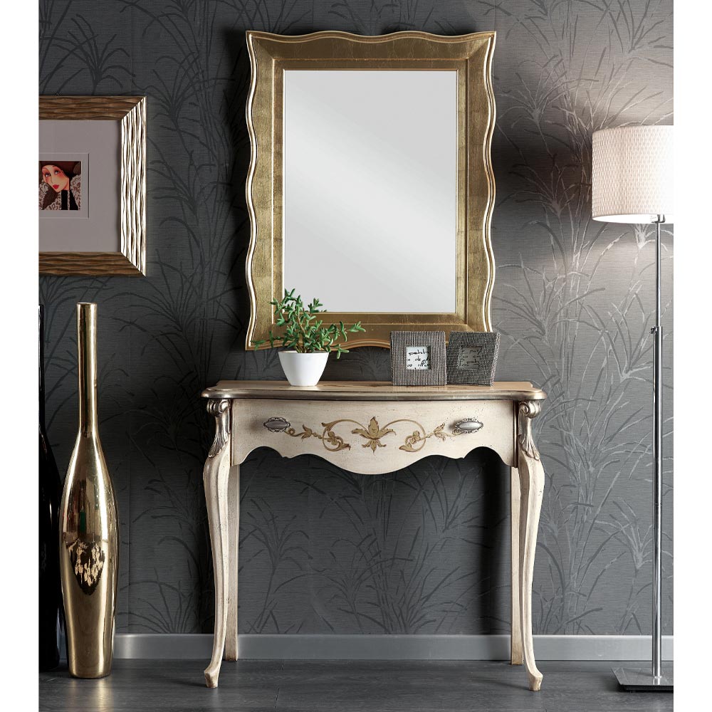 Flurkonsole im klassischen Stil aus Holz, komplett mit praktischer und geräumiger Schublade, erhältlich in Bassano-Nussbaum, Antikweiß und Schwarz und Silber. Eine einzigartige und raffinierte Ergänzung, die vollständig