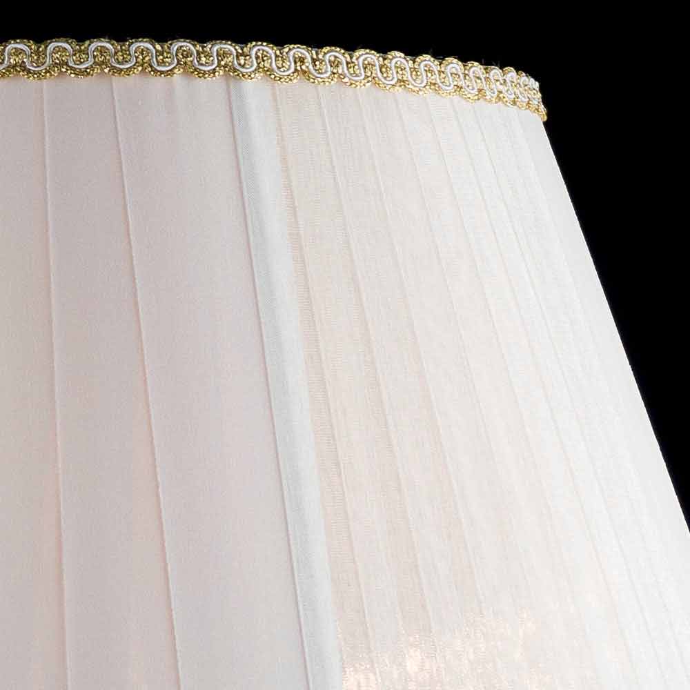 Designerlampe aus bernsteinfarbenem Glas und Kristall mit Goldfinish. Lampenschirm aus Organza und Pongé.