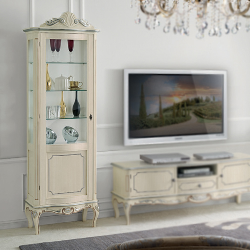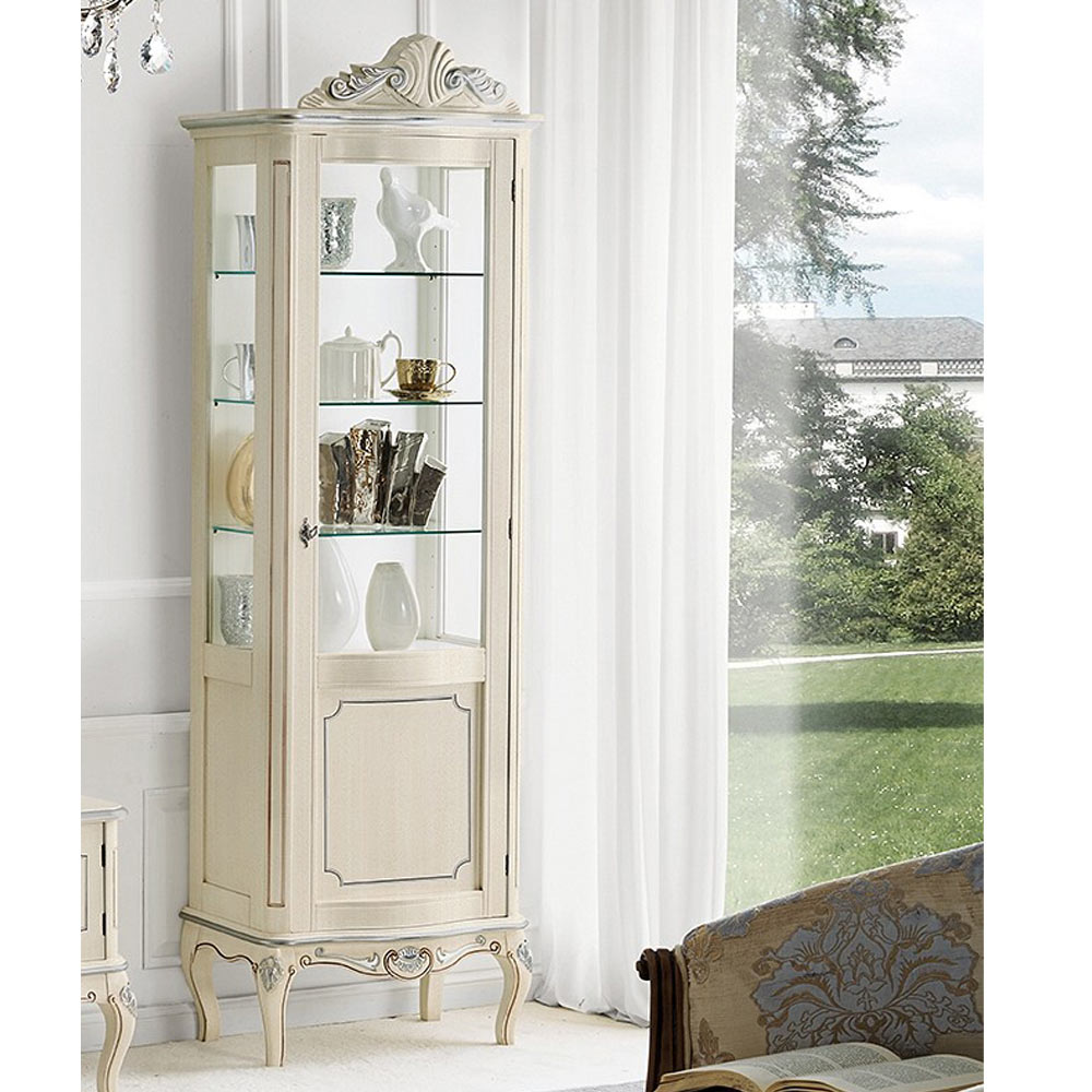 Klassische Vitrine in Weißnuss oder Mocca Made in Italy.