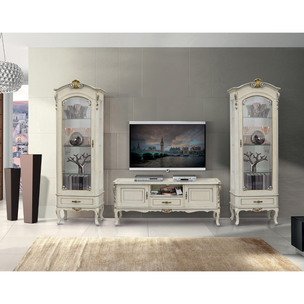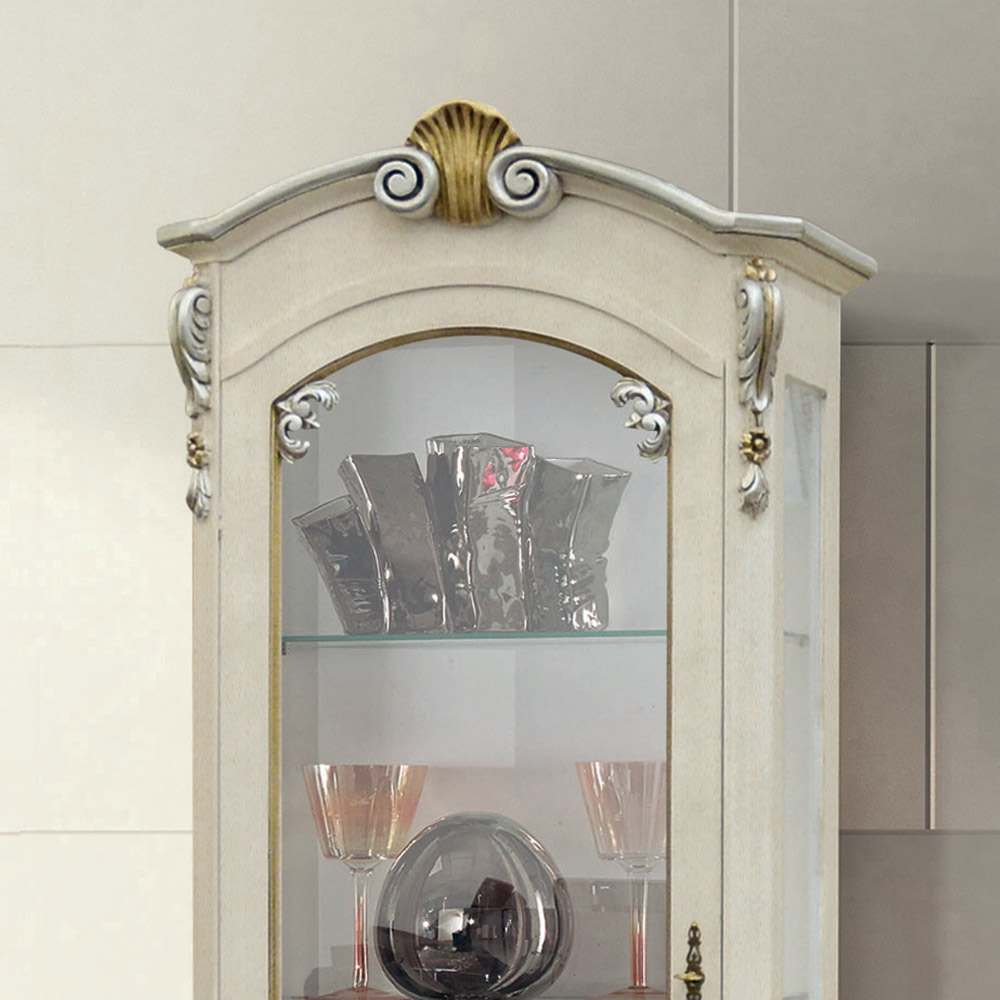 Klassische Vitrine mit Tür und Schublade aus weißem Holz Made in Italy.