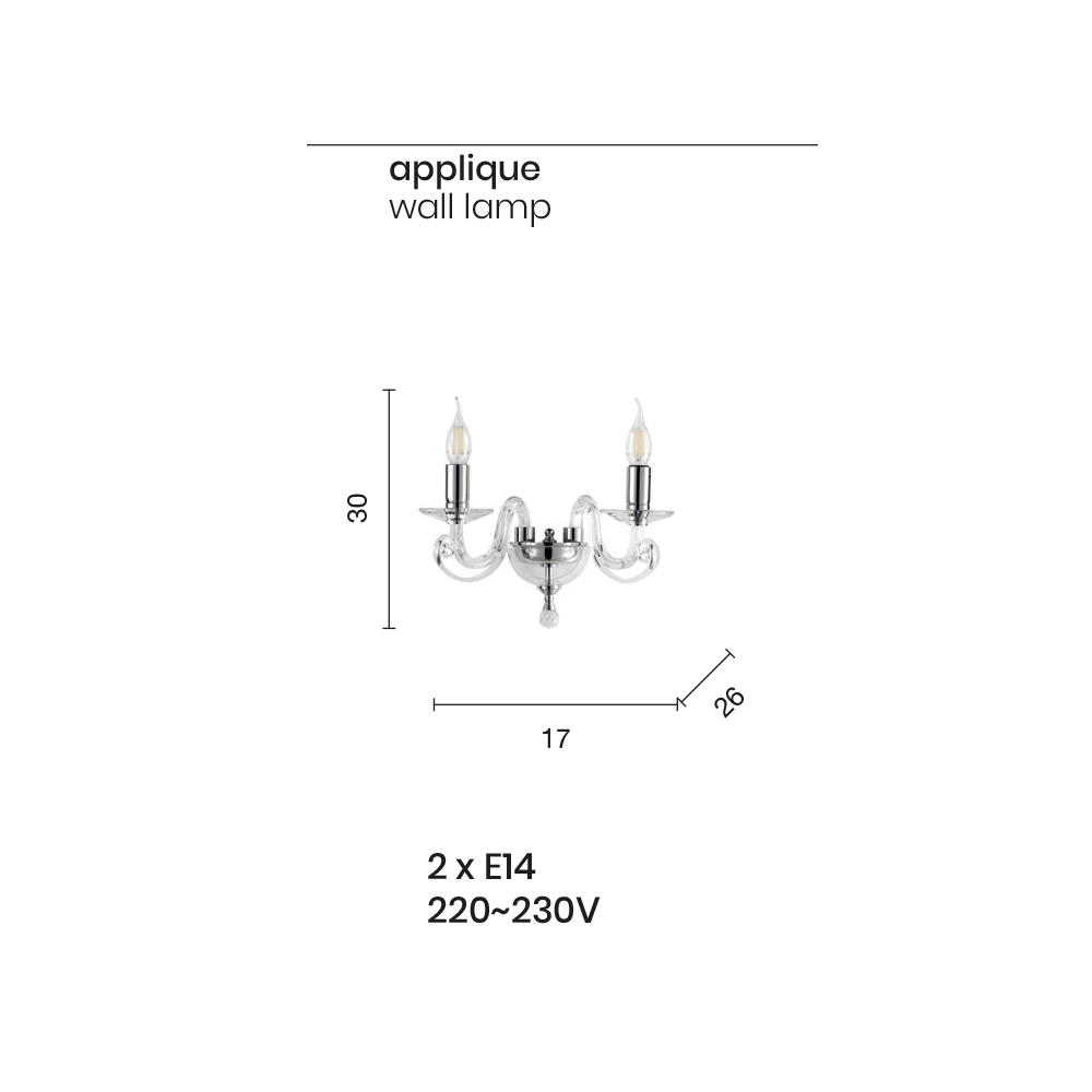 Hergestellt aus handgefertigtem Glas und optischem Kristall mit hochwertigen Materialien und besonderer Liebe zum Detail , wird die Wandleuchte zum Protagonisten der Umgebung, in der sie platziert wird, verschönert durch den runden Anhänger aus optischem Kristall und durch die verchromten Details Metall .