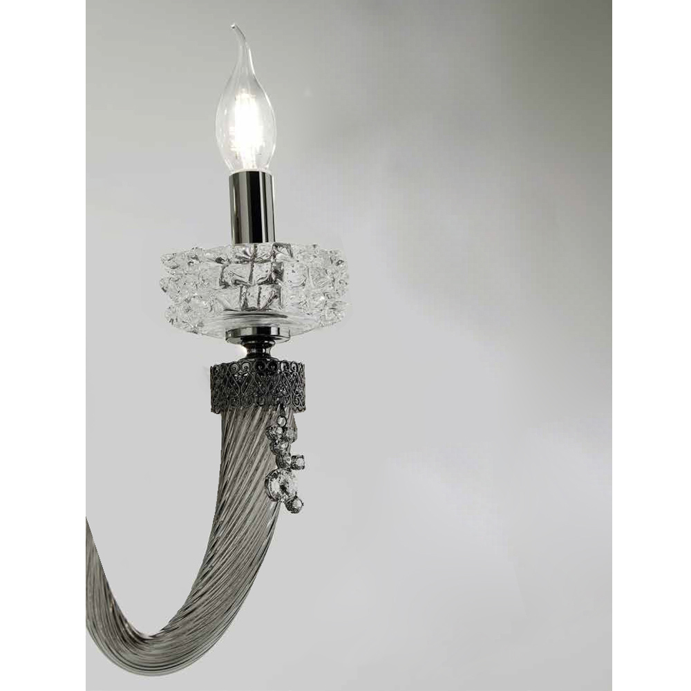 Die 2-flammige Wandleuchte ist ein luxuriöses Beleuchtungszubehör , das vollständig in Italien aus handgefertigtem Glas von höchster Qualität hergestellt wird.