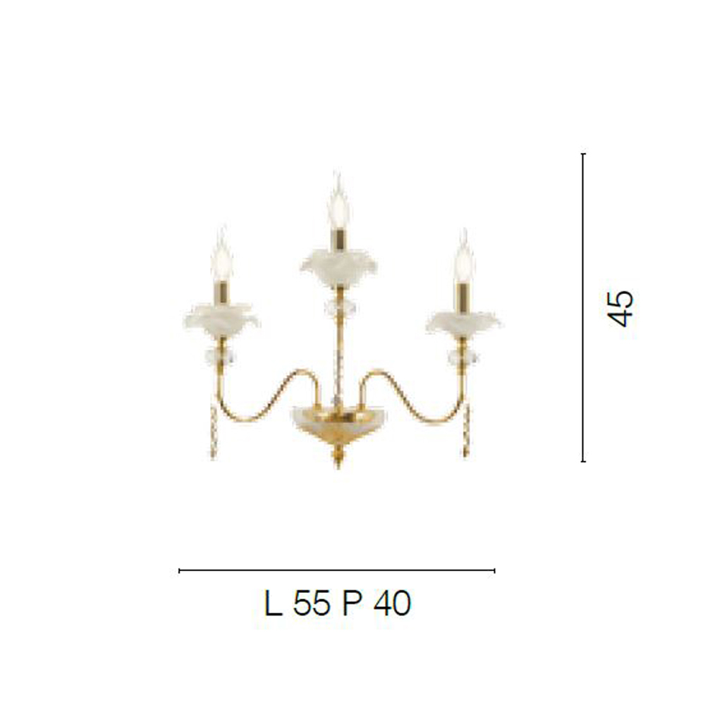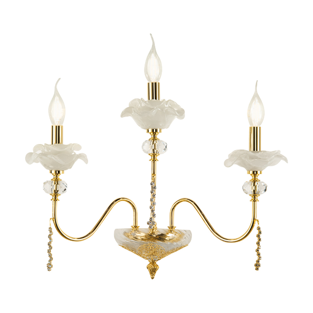 Klassische Wandlampe mit 3 Lichtern aus Glas, Kristall und Luxusmetall - Flandern