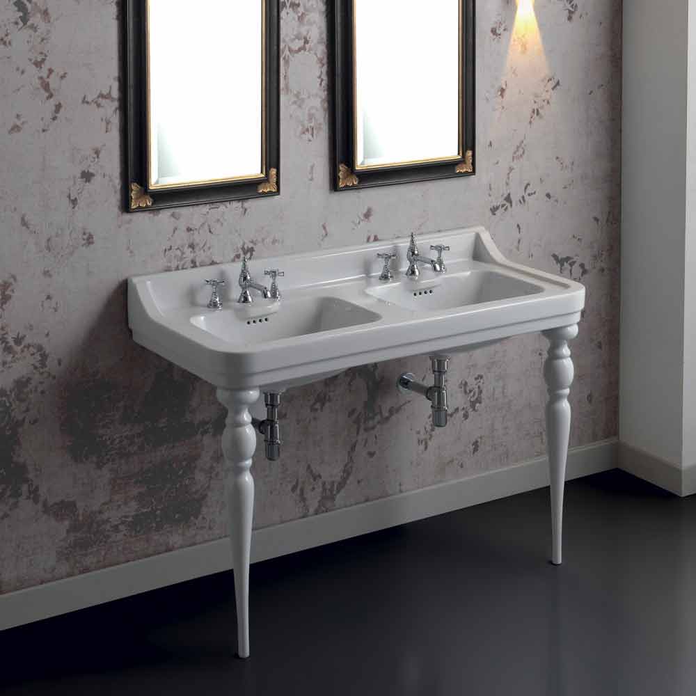 Doppelwaschbecken Konsole aus weißer Keramik made in Italy, Swami