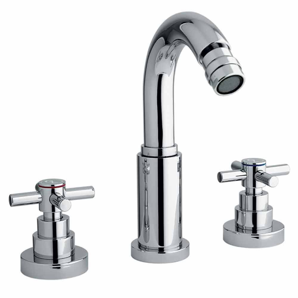 3-Loch-Bidetmischer in messingverchromter Ausführung Made in Italy.