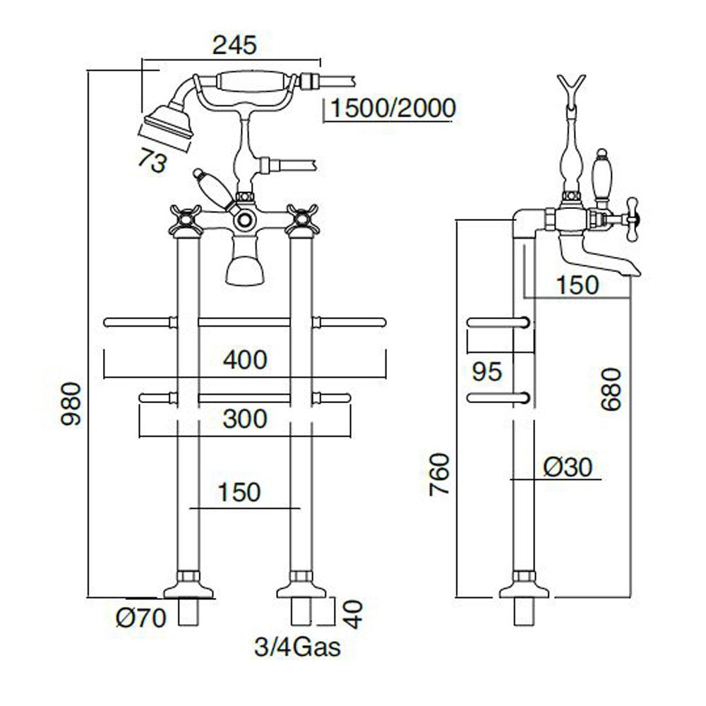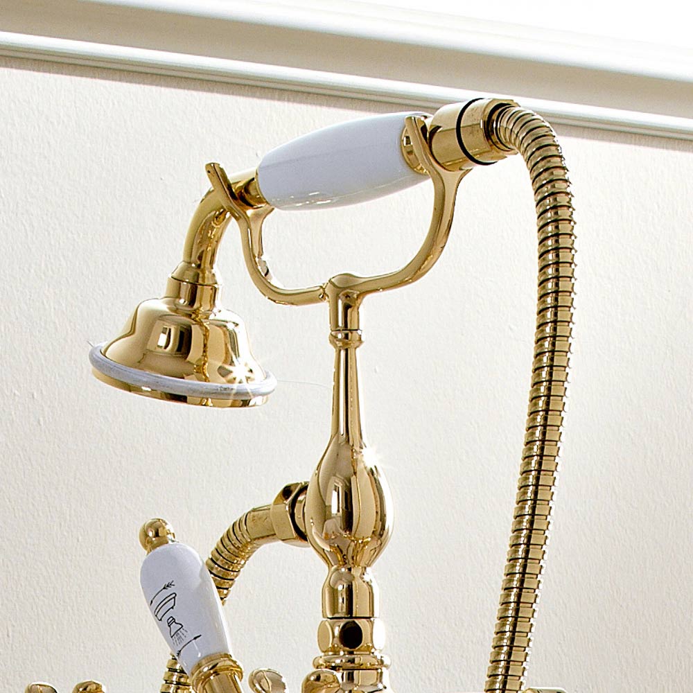 Klassischer Boden-Badewannenhahn aus Messing mit Handbrause - Fioretta