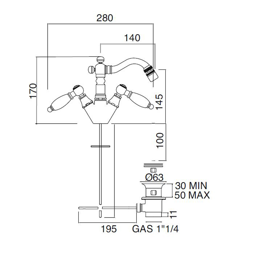Diese raffinierte Einzelloch-Bidetarmatur mit Ablauf ist vollständig handgefertigt von erfahrenen Handwerkern der Branche aus schwerem Messing, gegossen in Formen, die die handwerklichen Systeme der Vergangenheit respektieren und mit einer dicken Lackschicht geschützt, die in verschiedenen Farben erhältlich ist.