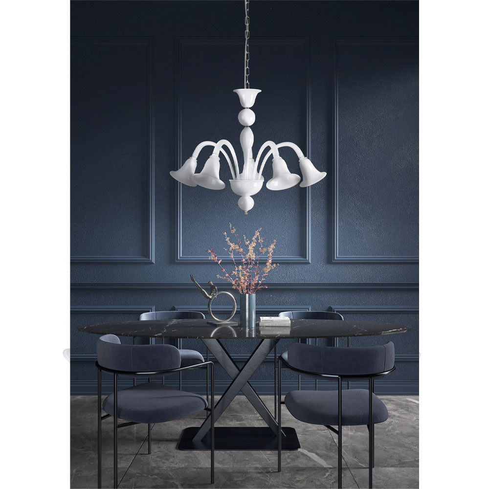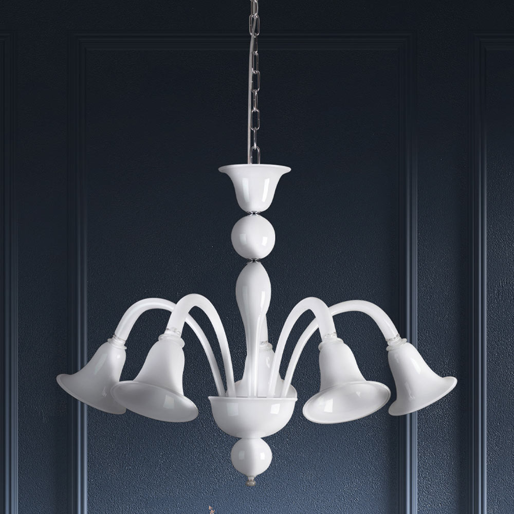 Klassischer handwerklicher Kronleuchter aus geblasenem weißem venezianischem Glas - Elsa