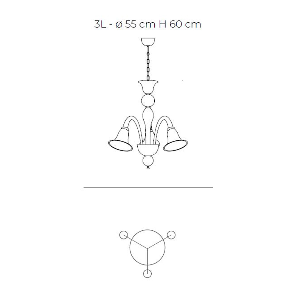 Klassischer Kronleuchter, handgefertigt aus mundgeblasenem Glas in den Öfen der venezianischen Lagune in Italien, unter Verwendung alter Muranoglas-Verarbeitungstechniken, die im Laufe der Jahre von den erfahrensten Glasmeistern weitergegeben wurden.