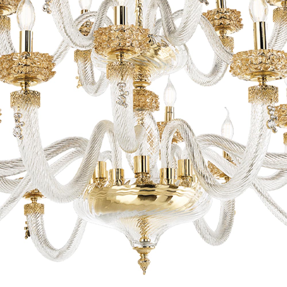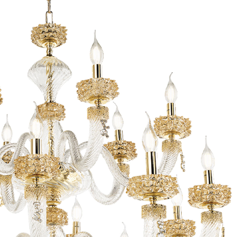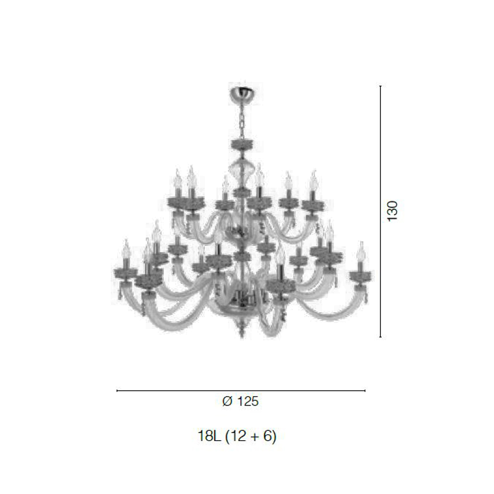 Kronleuchter mit 18 Lichtern aus handgefertigtem Glas und Metall, italienisches Luxusdesign.
