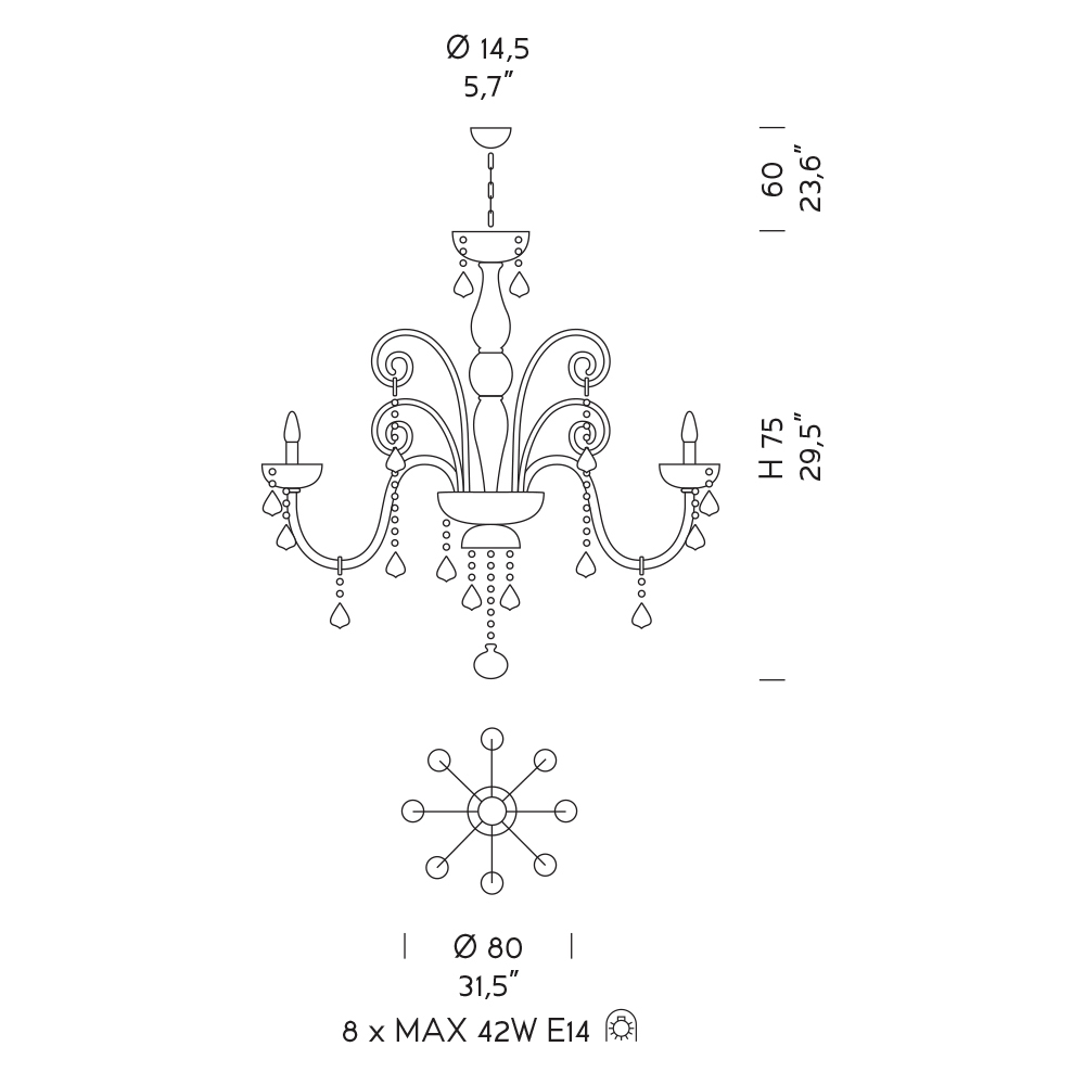 Leuchtmittel (nicht enthalten) : 8 x MAX 42W E14