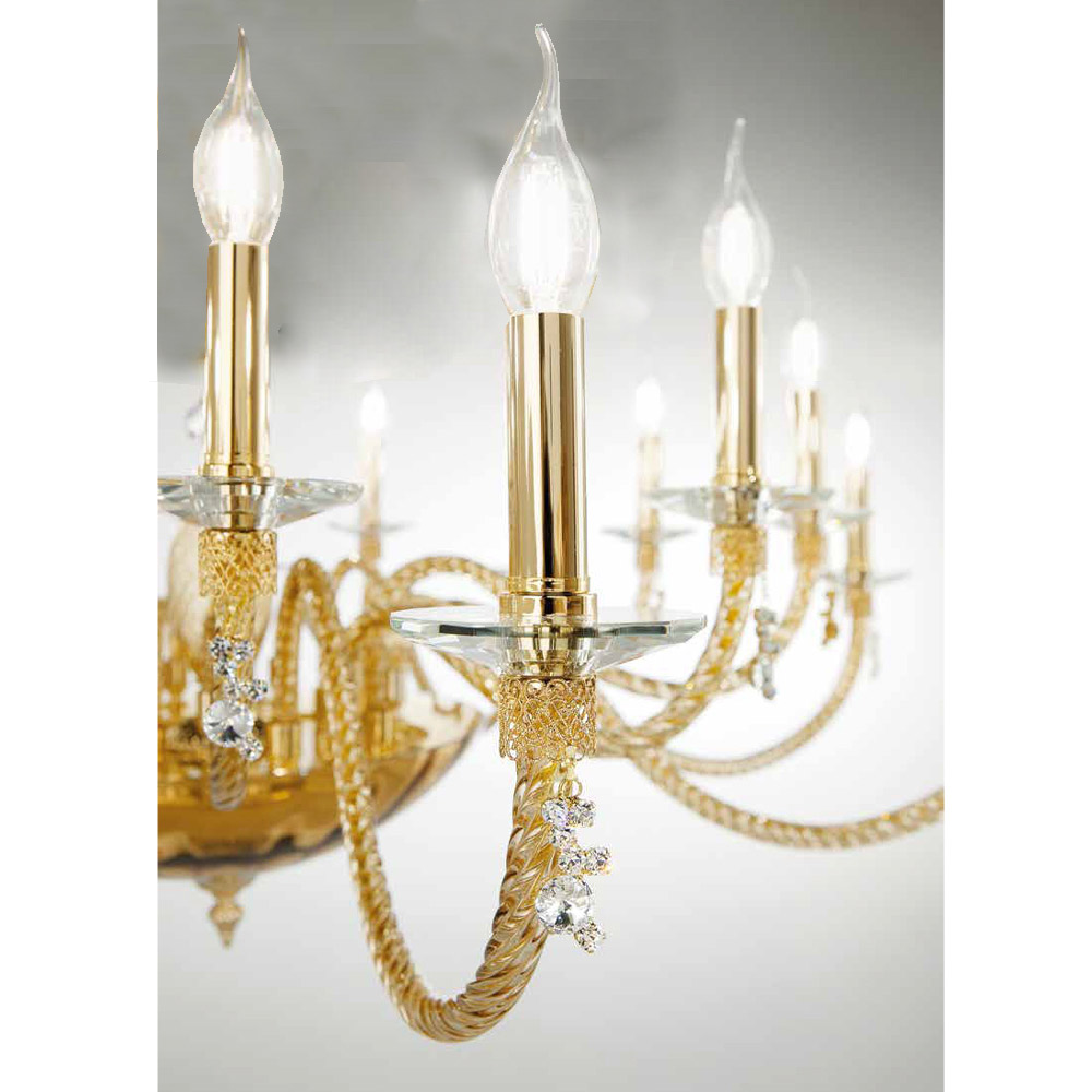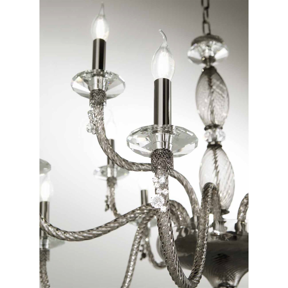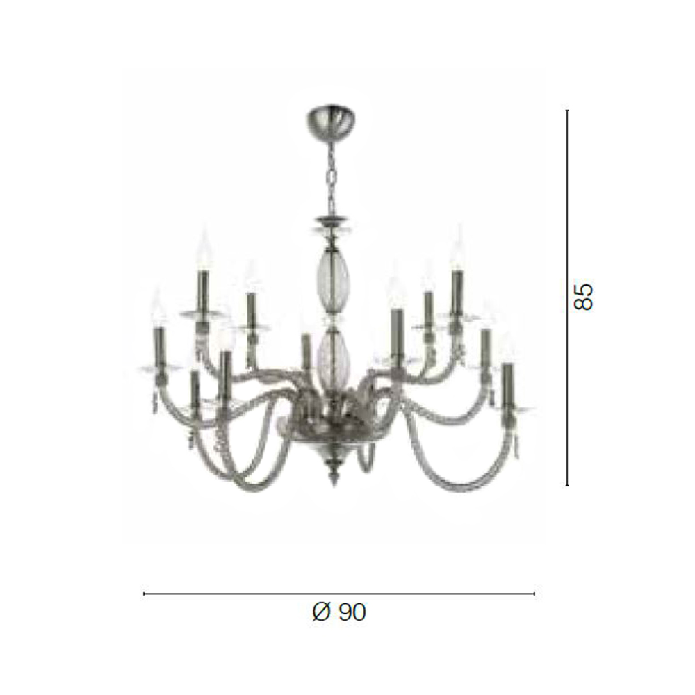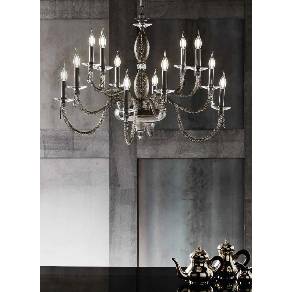 Klassischer Kronleuchter mit 12 Lichtern aus mundgeblasenem Glas und Handdetails - Phaedra