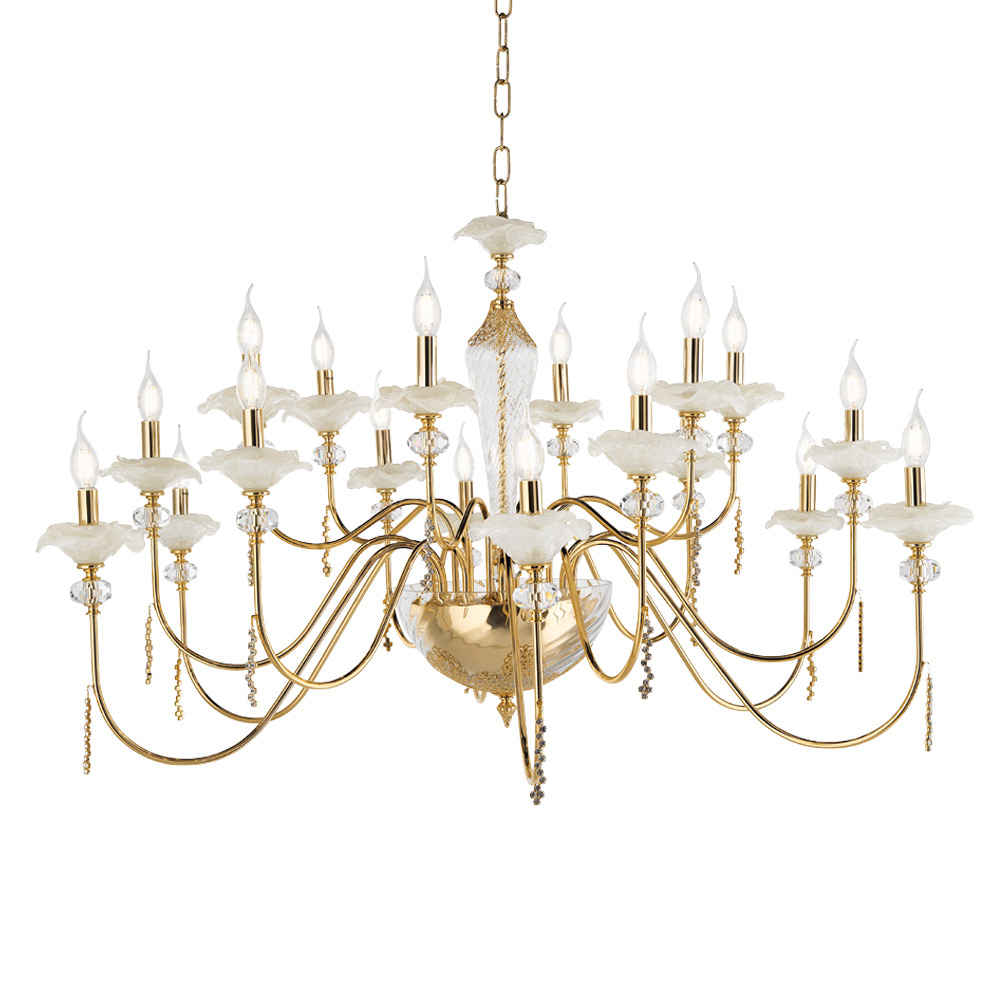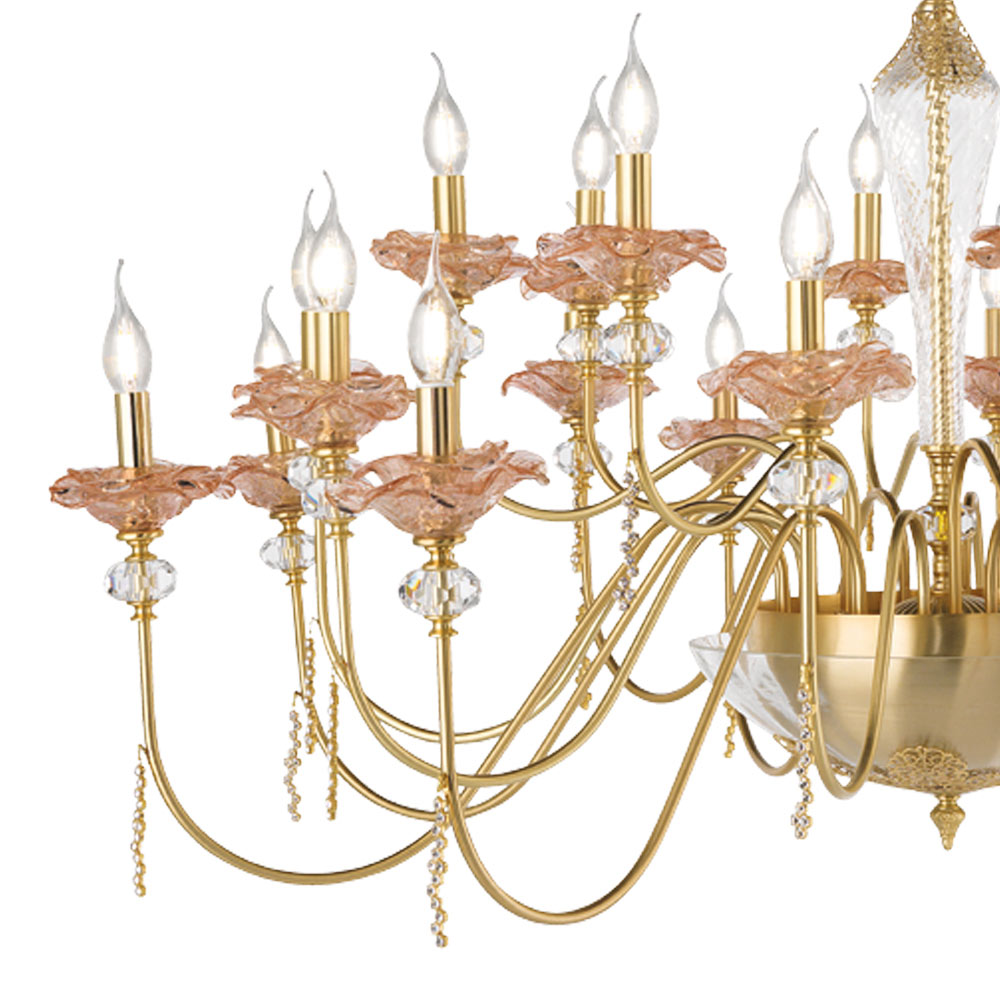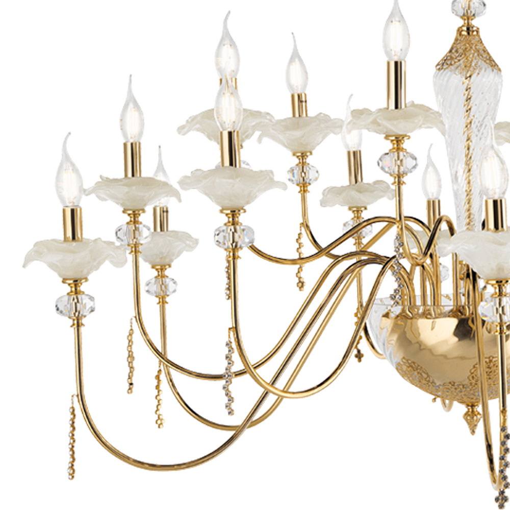 Klassischer Kronleuchter mit 18 Lichtern aus Glas, Kristall und Luxusmetall - Flandern