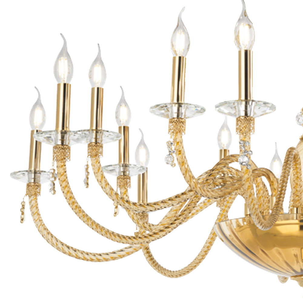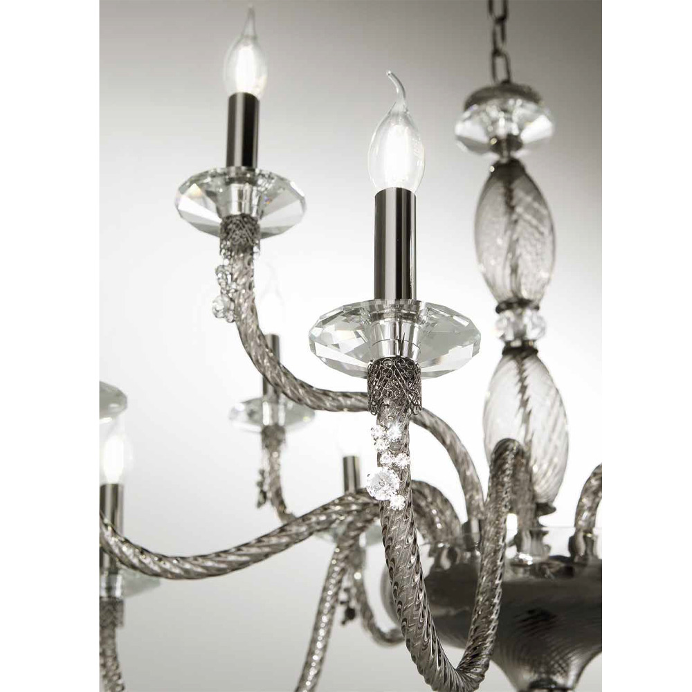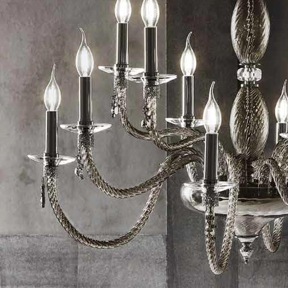 Kronleuchter mit 18 Lichtern aus mundgeblasenem Glas und Juwelendetails, italienischer Luxus.