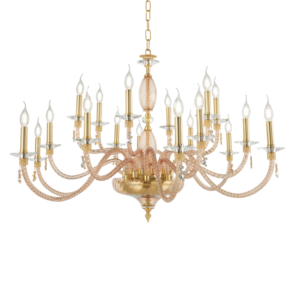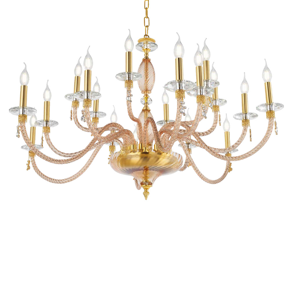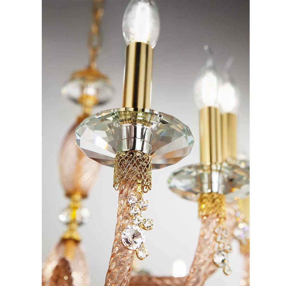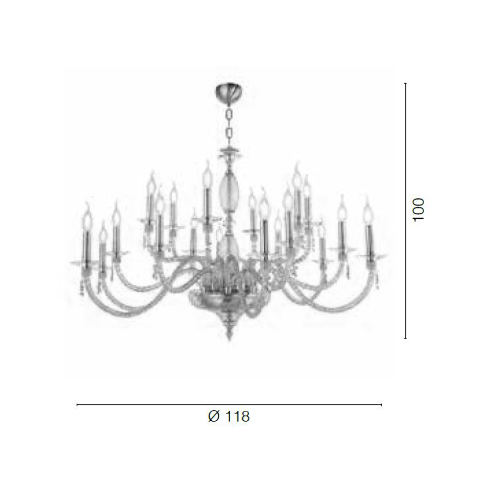 Kronleuchter mit 18 Lichtern aus mundgeblasenem Glas und Juwelendetails, italienischer Luxus.
