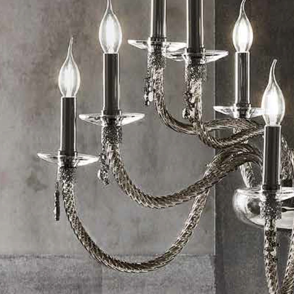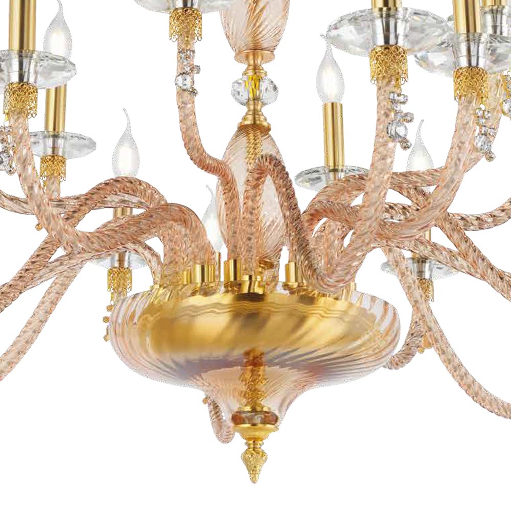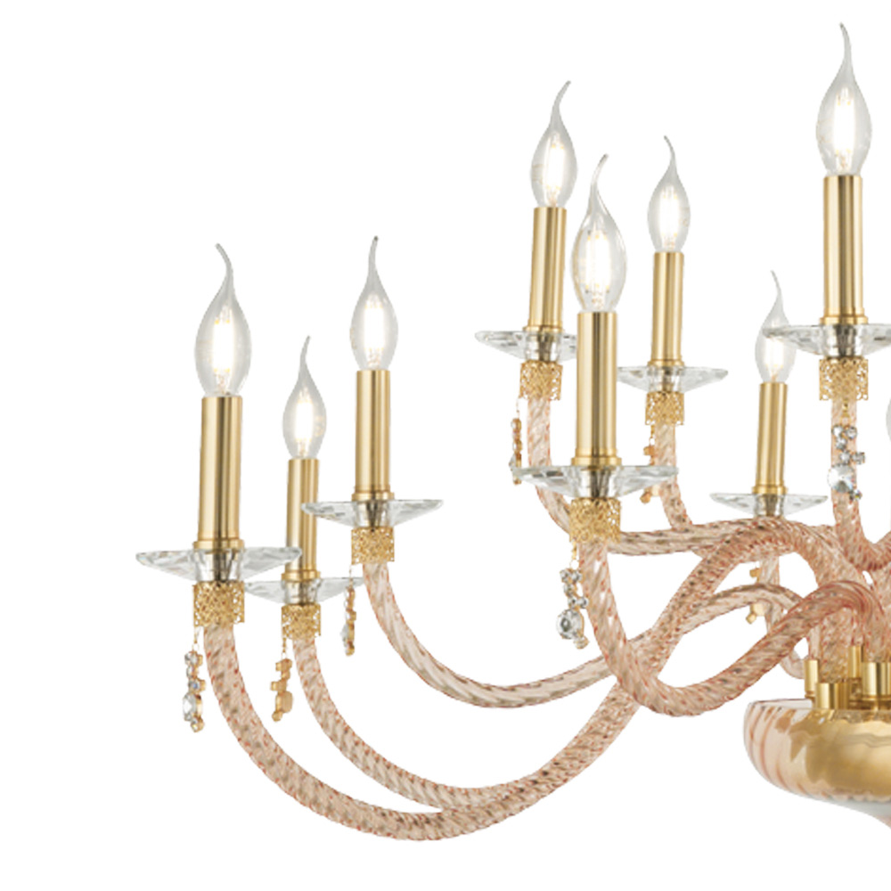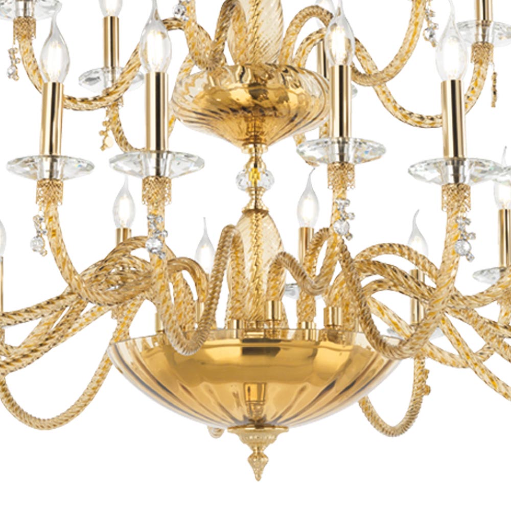 Kronleuchter mit 24 Lichtern aus mundgeblasenem Glas und Schmuckdetails, italienischer Luxus.