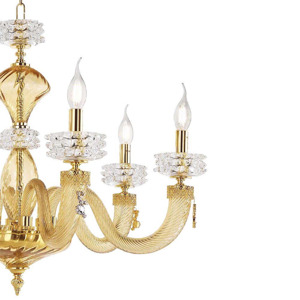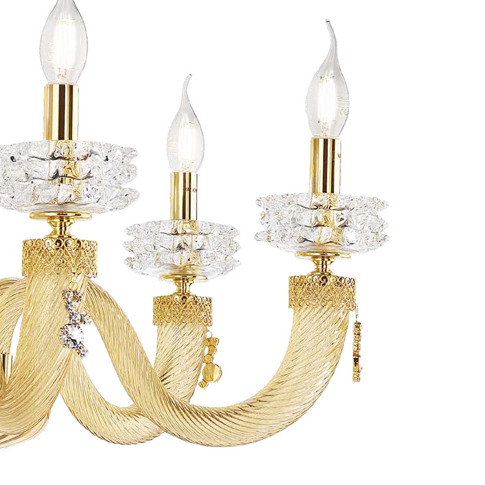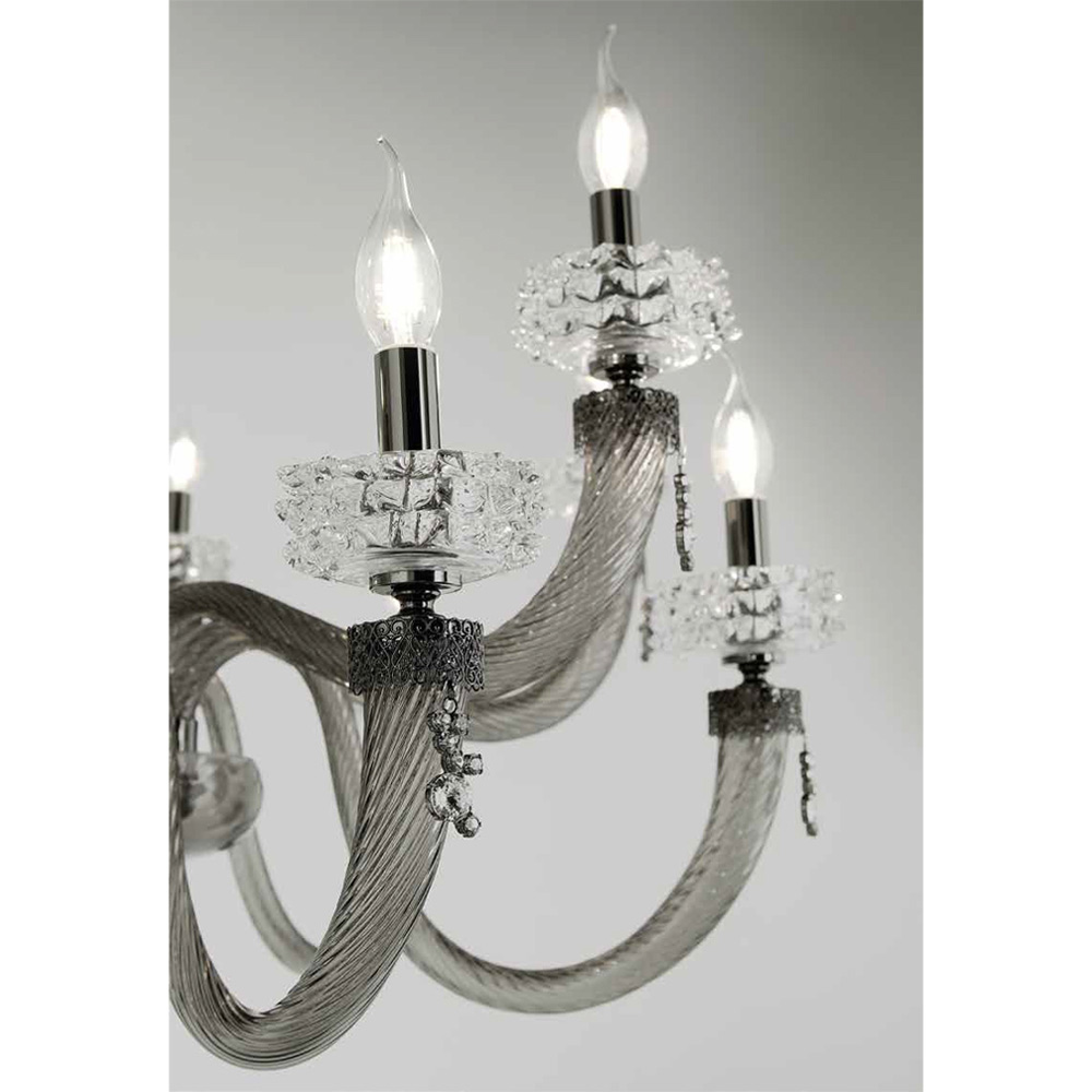 6-flammiger Kronleuchter aus handgefertigtem Glas und Metall, italienisches Luxusdesign.
