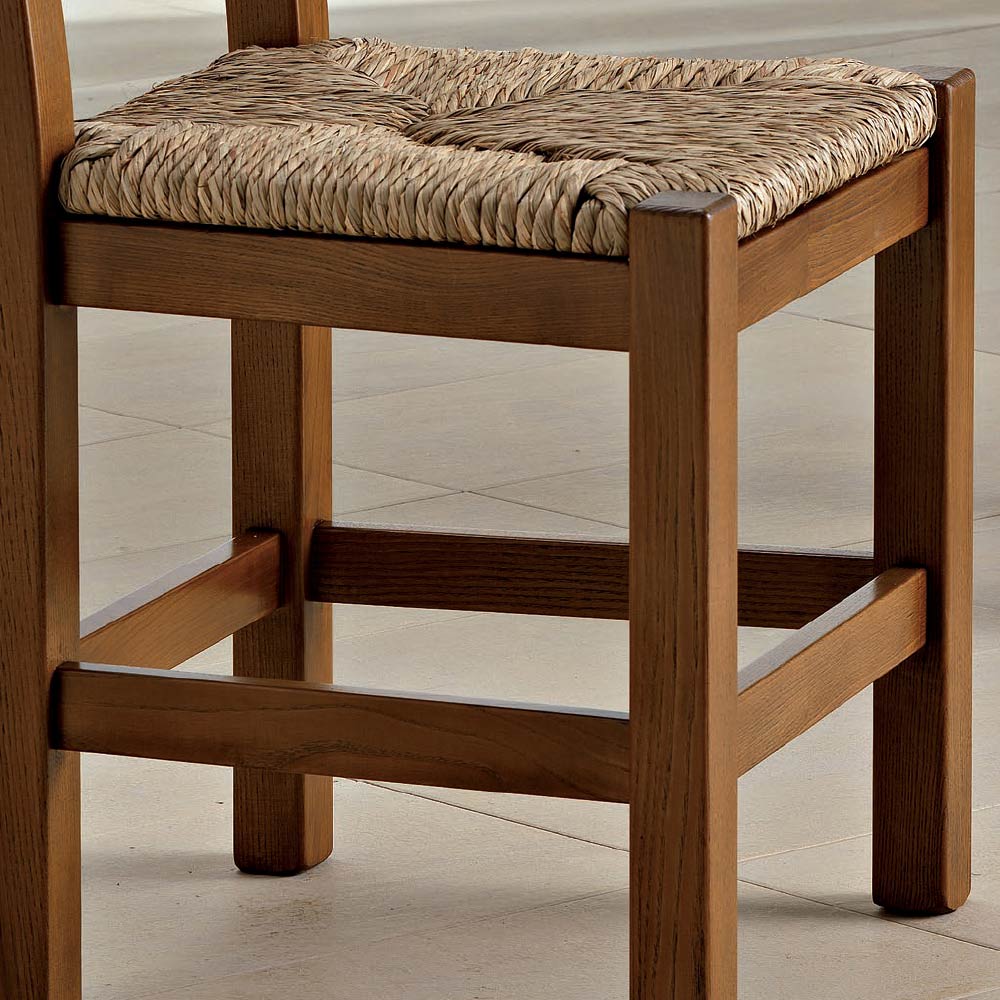 Küchenstuhl im klassischen Design aus Holz und Stroh, hergestellt in Italien.