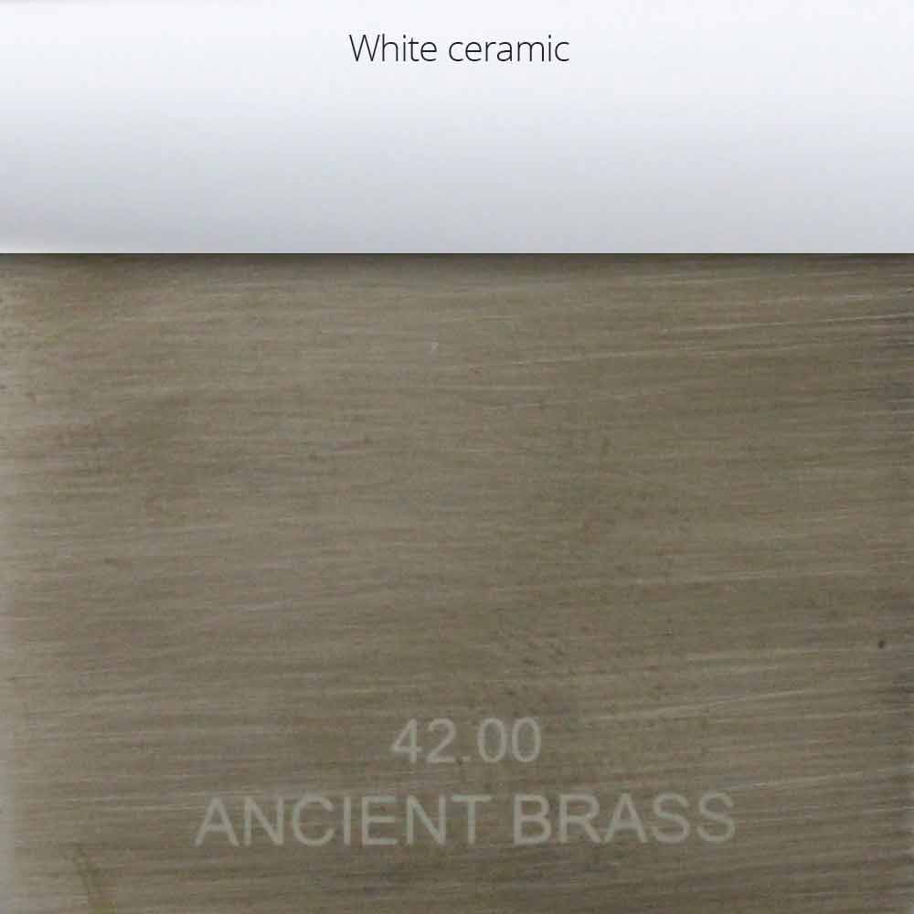 - Altes Messing: matt gebürstetes antikes Messingfinish mit weißen Keramikeinsätzen an den Griffen;