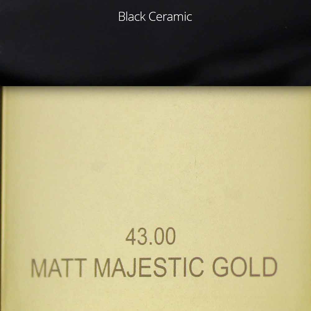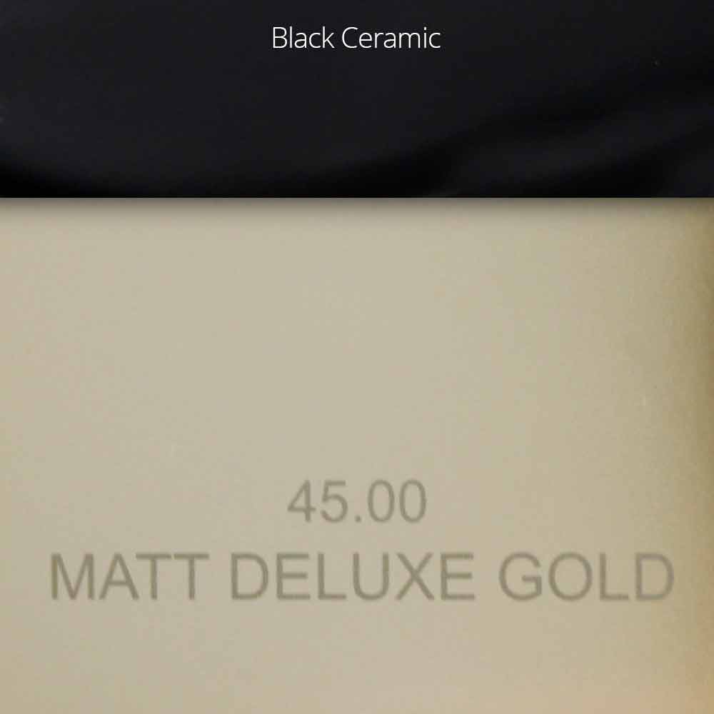 - Matt Majestic Gold: Mattes 13-Gold-Finish mit schwarzen Keramikeinsätzen an den Griffen;