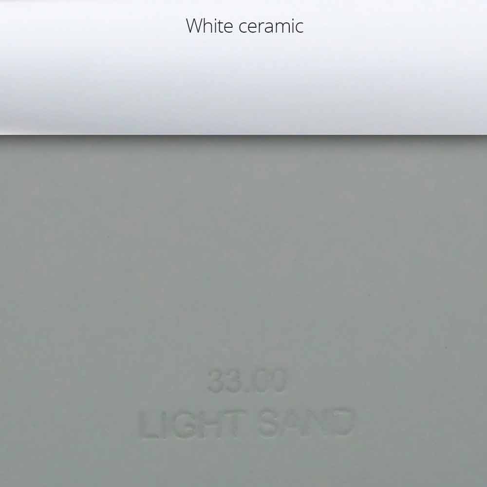 - Leichter Sand: mattes warmes hellgraues Finish mit weißen Keramikeinsätzen an den Griffen;