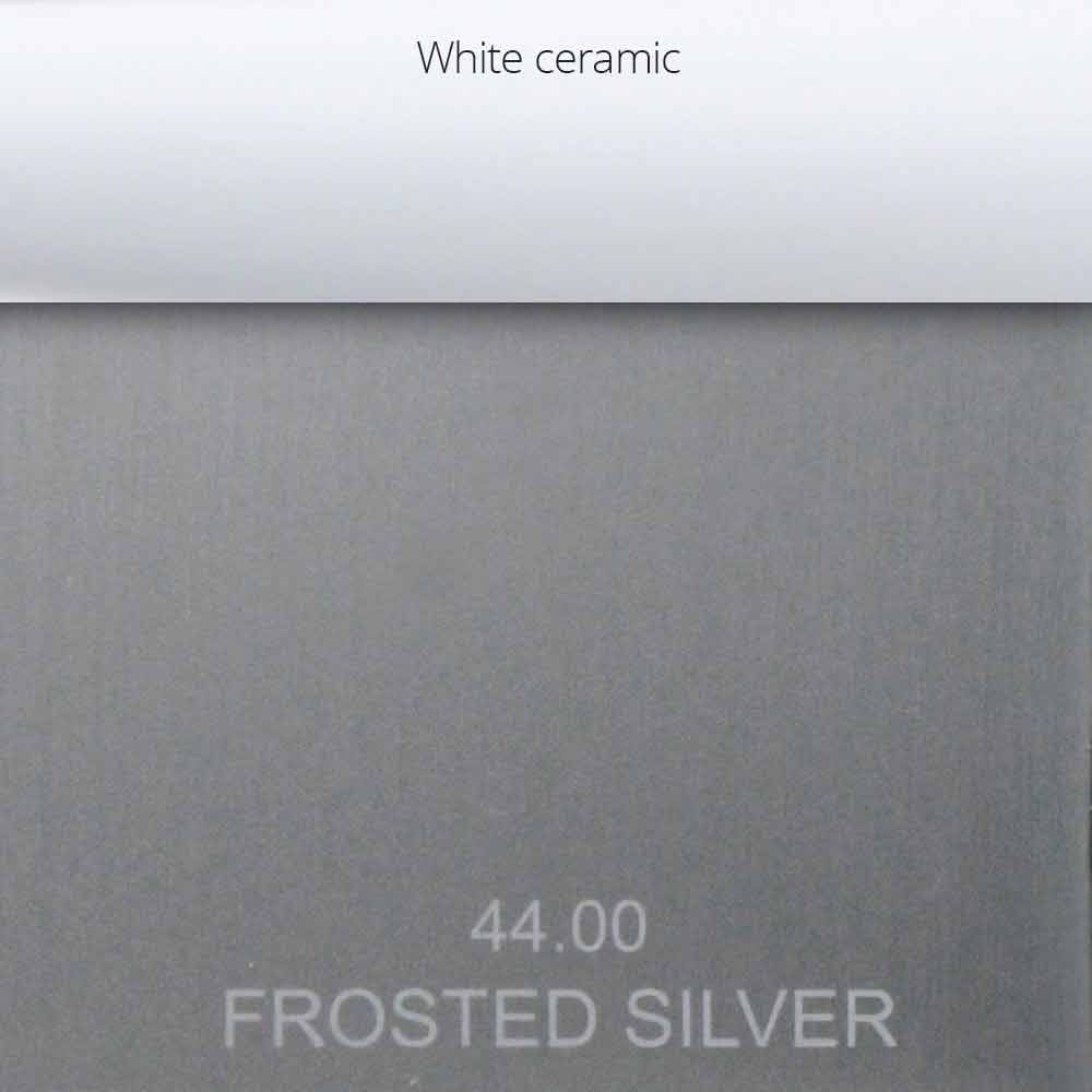 - Frosted Silver: matt gebürstetes Silber mit weißen Keramikeinsätzen an den Griffen;