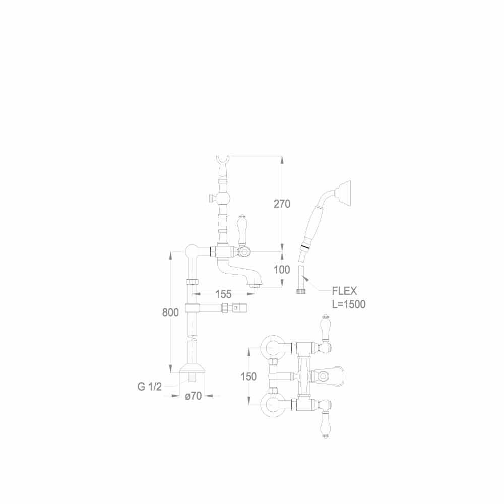 Externer Bademischer auf Arbeitsplatten mit Umsteller und Duplex-Handbrause Made in Italy.