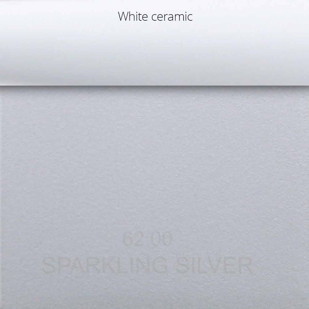 - Sparkling Silver: Metallic-Finish in mattem Silber mit weißen Keramikeinsätzen an den Griffen;