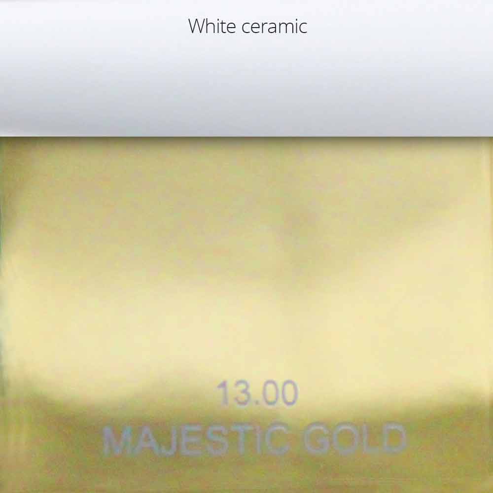 - Majestic Gold: glänzendes 13-Gold-Finish mit weißen Keramikeinsätzen an den Griffen;
