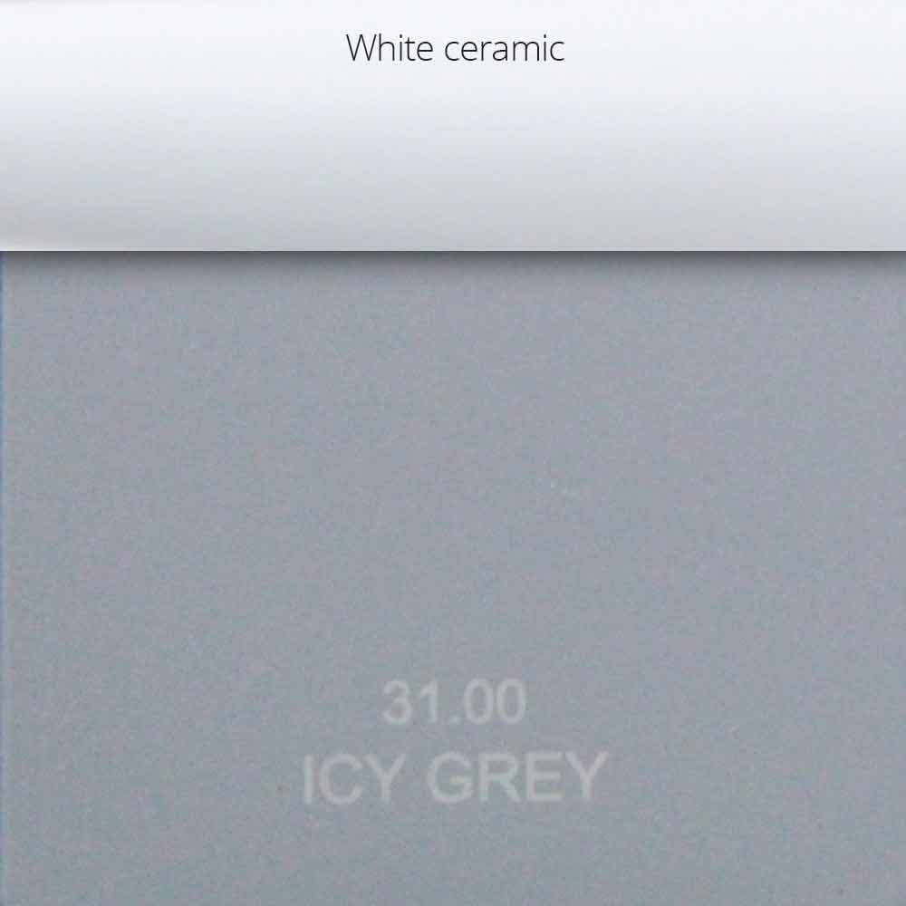 - Eisgrau: mattes kaltes hellgraues Finish mit weißen Keramikeinsätzen an den Griffen;