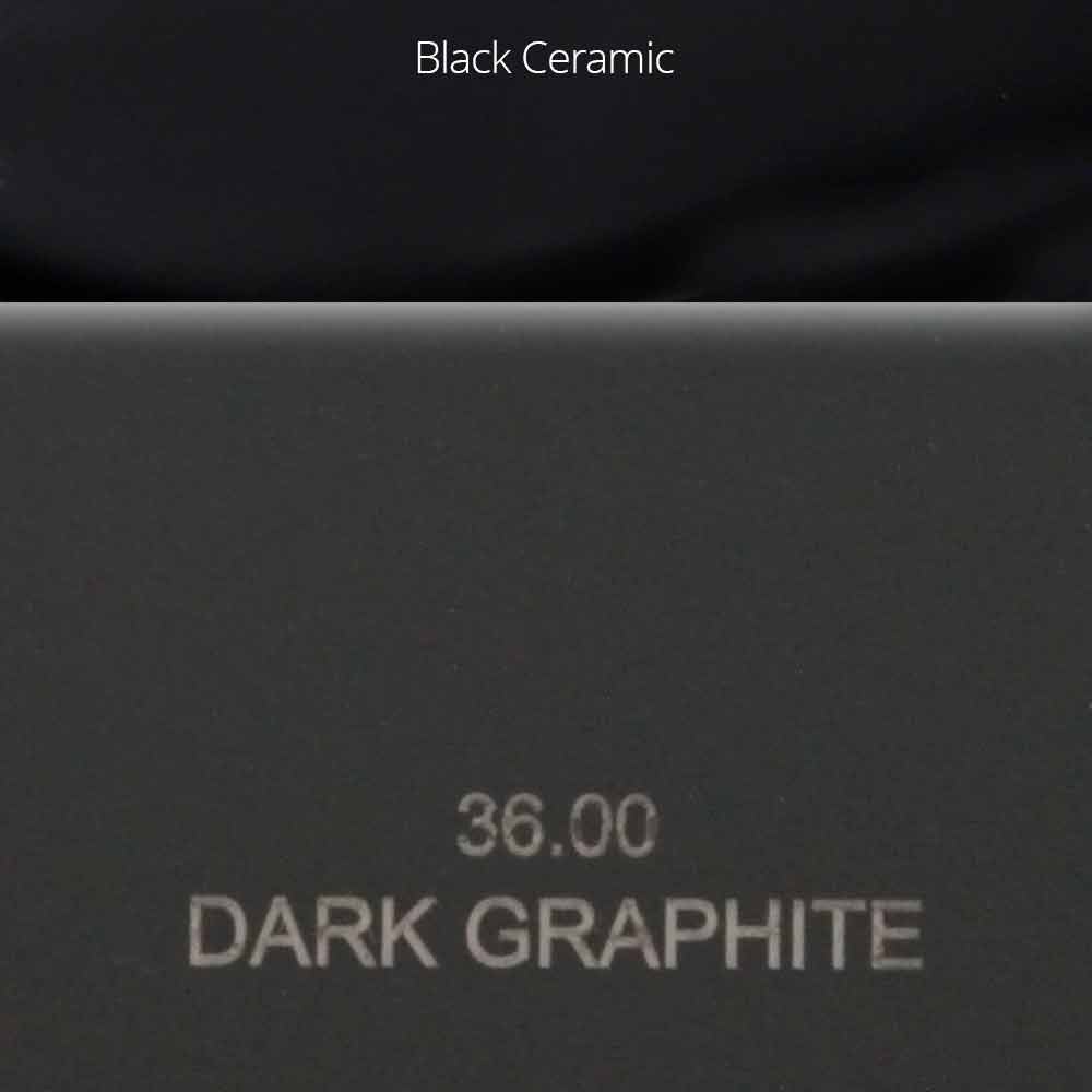 - Dunkler Graphit: mattes kaltes dunkelgraues Finish mit schwarzen Keramikeinsätzen an den Griffen;