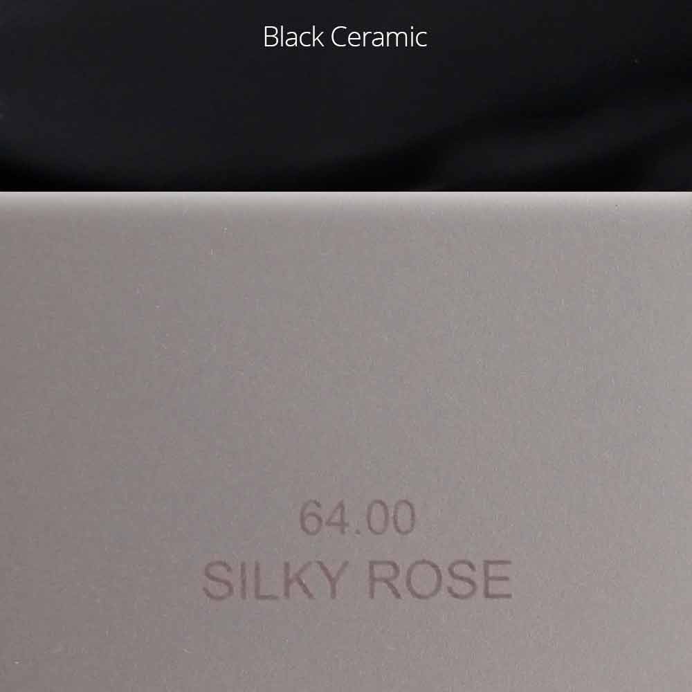 - Silky Rose: Mattrosa Metallic-Finish mit schwarzen Keramikeinsätzen an den Griffen;